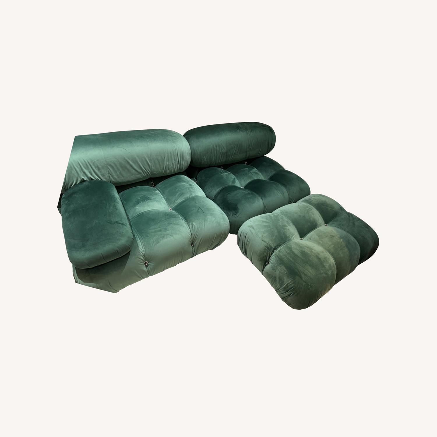 Seller's Notes:Three piece sectional sofa that I bought in eternity modern a year ago and is still under warranty! It is a two seater with an attached ottoman. All pieces can be clipped together or placed separately. The sofa is velvet army green with no blemishes and has barely been used. I love the sofa but it is much too small for my new place!