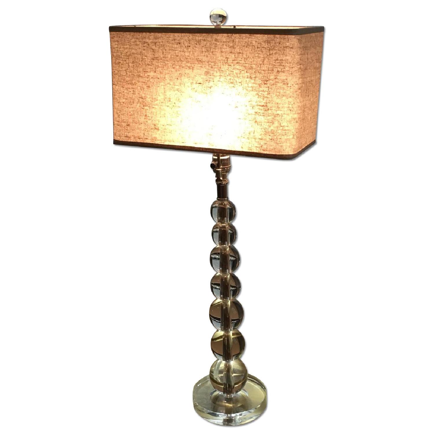 Seller's Notes:Beautiful crystal ball lamp purchased from original Martha Stewart website (pre-prison - back when she carried the good stuff!). Lamp is in perfect condition. Comes with restoration hardware French linen box shade in sand color. 31" tall - shade is 13x7.5x7.5