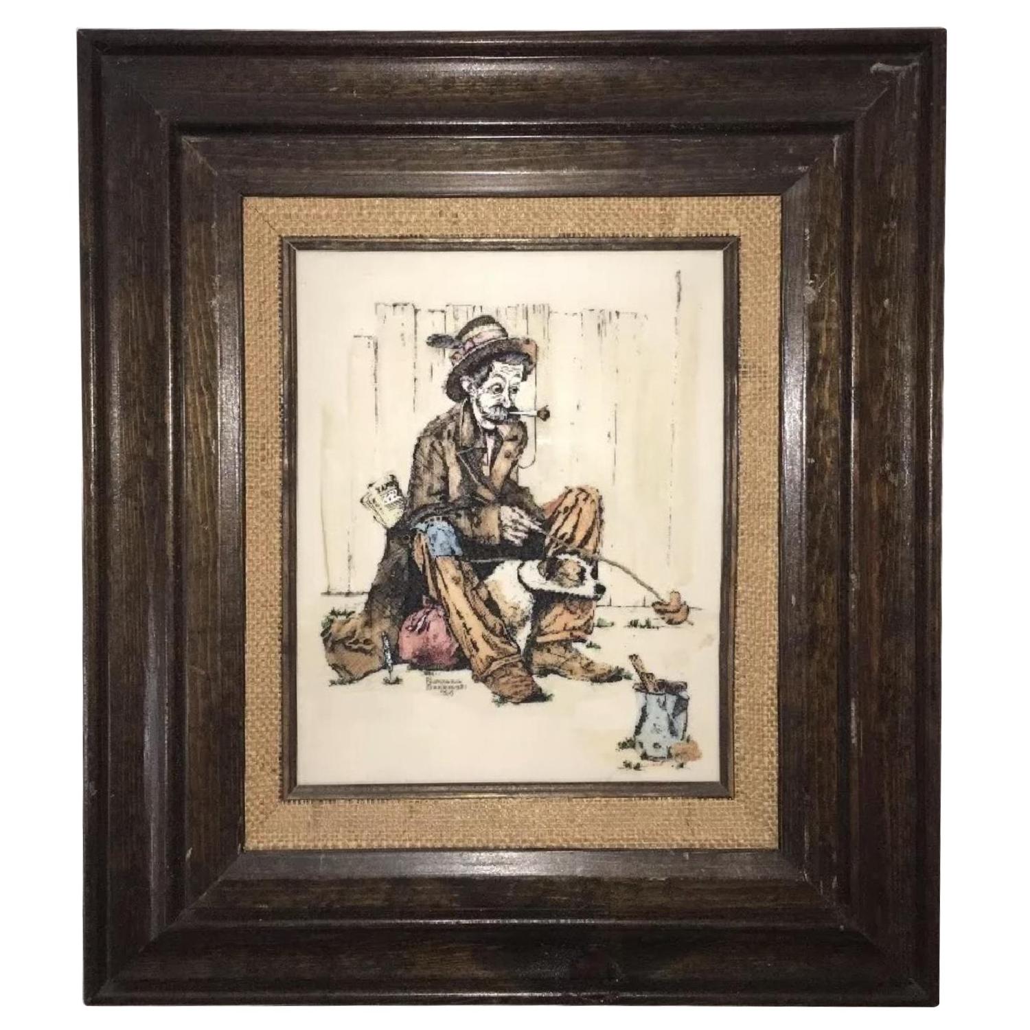 Seller's Notes:This is a genuine Marvetti cultered-ivory engraving, of The art for this print was originally used for the cover of Post Magazine on OCTOBER 18, 1924! Norman Rockwell captured the essence of the American veteran returning home. This beautiful picture is remarkable, double-etched engraving was created by the Marvetti Guil of applied art from a blend of carrara marble dust & other man made raw materials. It is a lovely translucent quality of ivory, yet no living creature has been harmed. This was a cherished heirloom, it is about 50 years old. Etched signature of Norman Rockwell. Housed in a wooden 17 "x 15" frame has a picture hook for hanging. The ivory etch picture is 8" x 10" which sits in center of frame. Frame has some scratches and needs repair or replace. Etched engraving is done in soft colors, such as blues, creames, pinks browns and etc. This is sure to bring joy to a true collecter, or to any deco.
