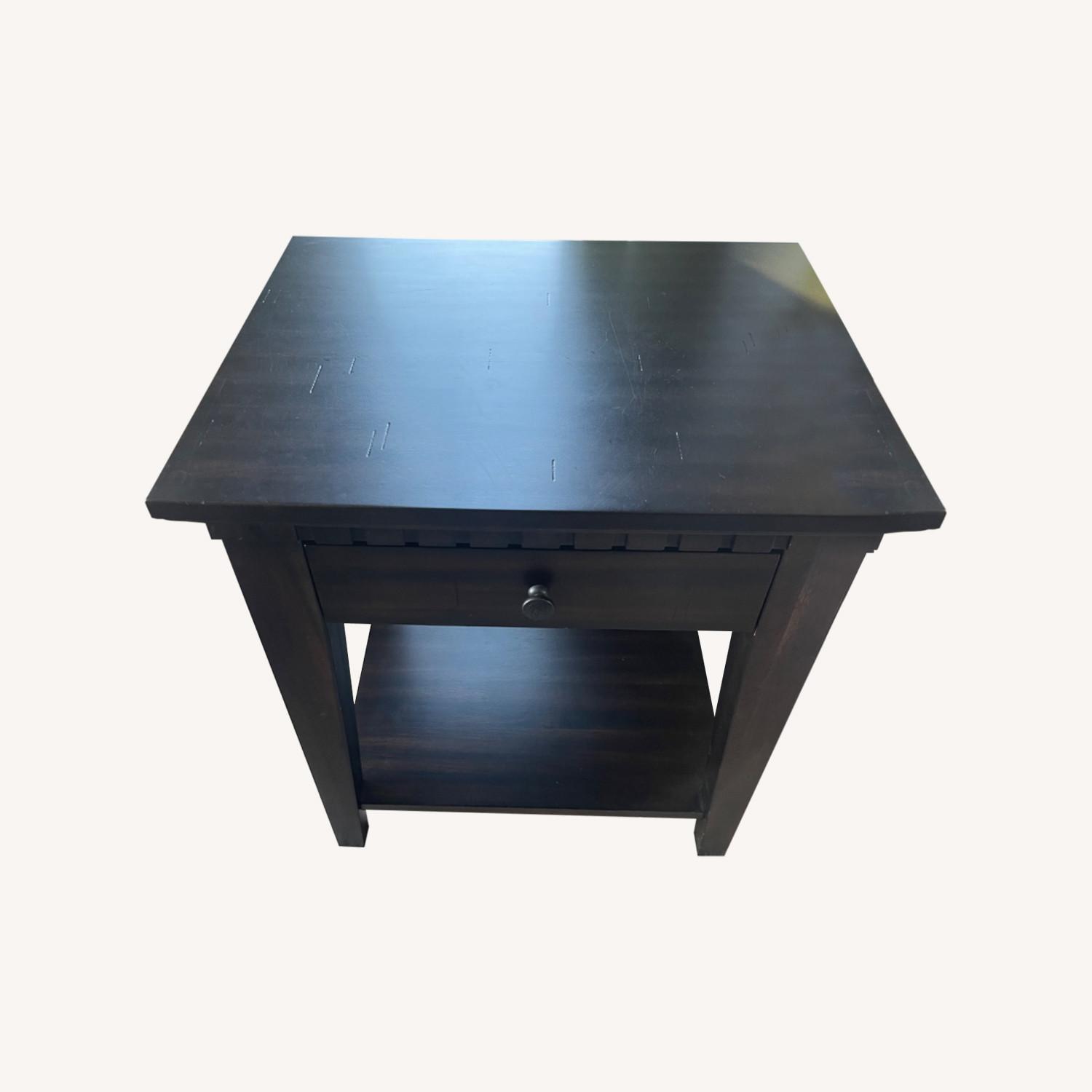 Seller's Notes:Purchases from American furniture warehouse as a matching set with the coffee table which is also for sale, gently used, minimal wear, each has one drawer