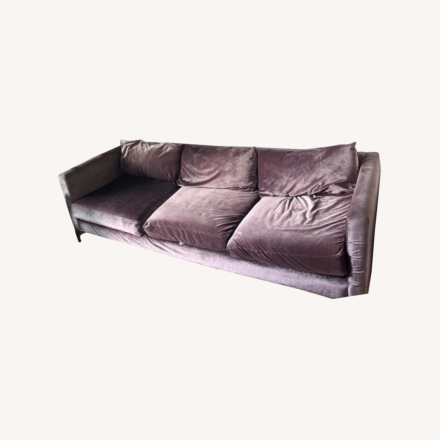 Seller's Notes:A Modern Mauve Velvet Couch - Lightly Used! We have had the couch for about a year - we are moving and can’t take her with us. Pillows: $5 each Couch: $350 Couch dimensions: - 84 length, 34 depth and about 24.5 height Please message for additional questions or if you’d like to come and see the couch! 50% deposit required to hold the item / 50% paid upon pick up