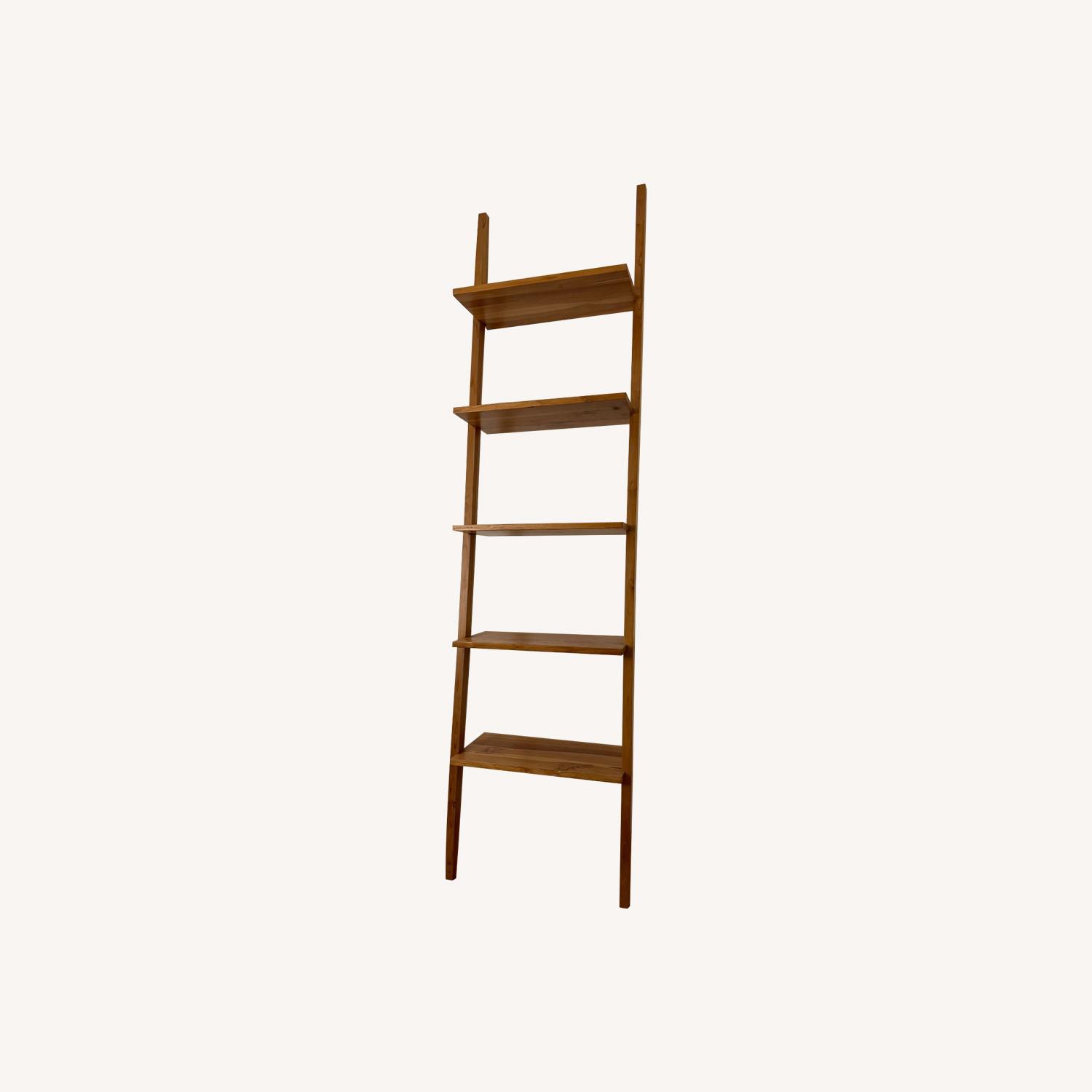 Seller's Notes:Midcentury modern hand crafted shelf ladder. Beautiful solid wood, satin finish, exposed dowelled joints. The top shelf has some round stains, which can be sanded and refinished by buyer. The shelf is in generally very good condition otherwise. The shelf was bought second hand 10 years ago. Dimensions are 89"h x 23"w x 12"d.
