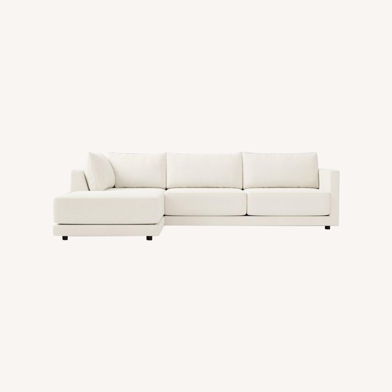 Seller's Notes:Beautiful modern L-shaped sectional sofa in a neutral light beige fabric. Purchased approximately three years ago and gently used in a smoke-free home. The sofa is comfortable, supportive, and has been well cared for.