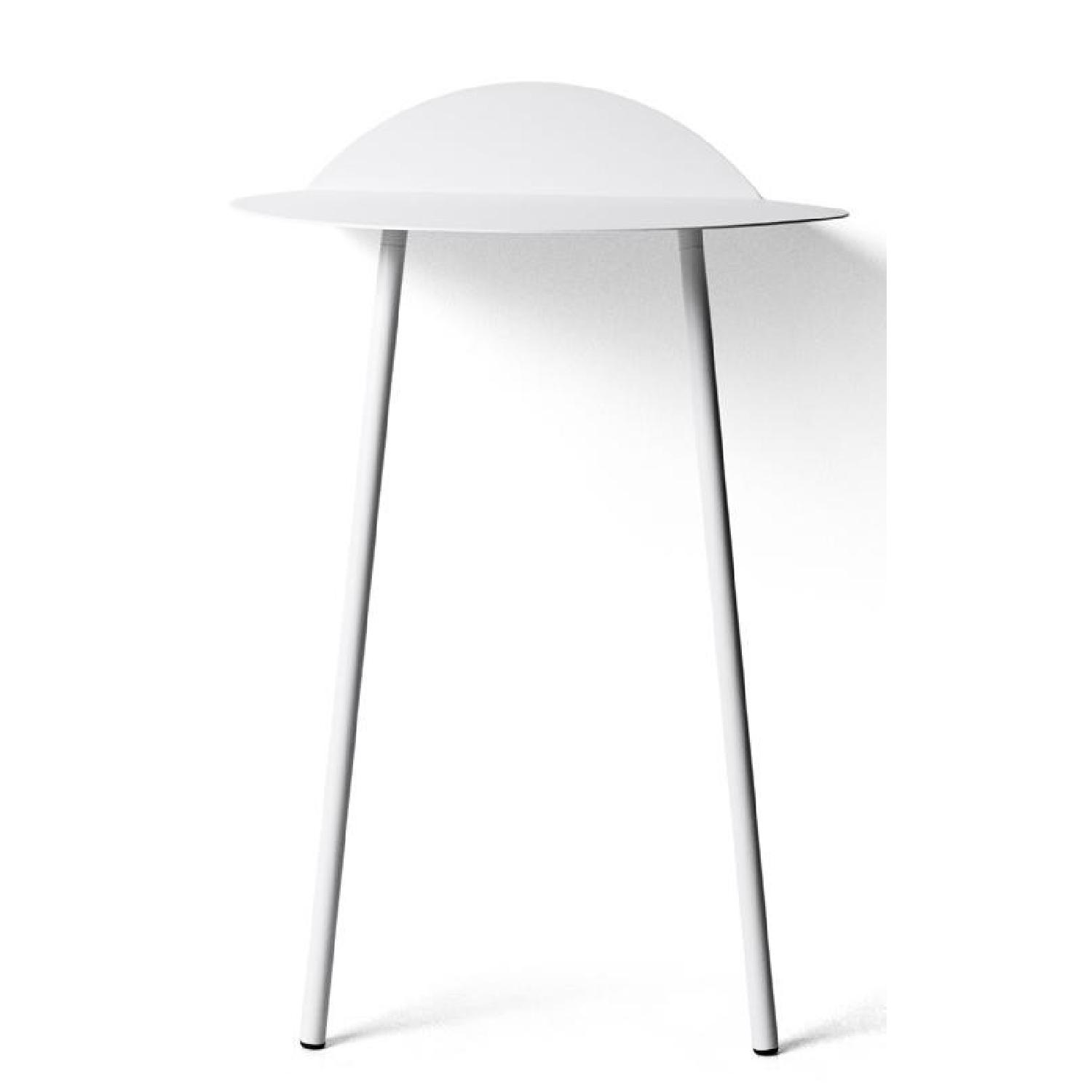 Seller's Notes:Sleek, minimalist wall table from Scandinavian design firm Menu. Perfect for multiple uses: tall enough to sit at as a small desk or vanity, or serve as a hallway/decorative side table. Lightweight and easily transportable. Stands on two legs to lean against the wall and can be screwed into wall for additional support and sturdiness.