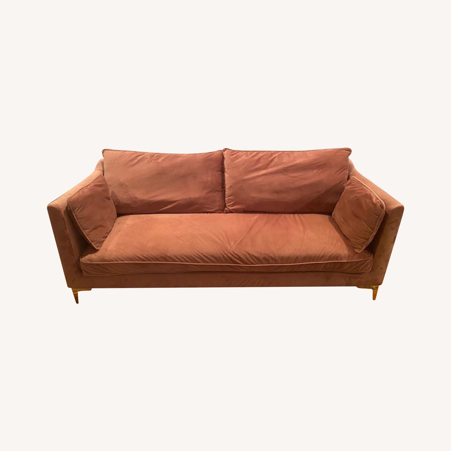 Seller's Notes:Purchased 2 years ago. The seat is deep enough that it can be used as a sleeper sofa and is very comfortable. Selling because I am changing my decor and it will no longer match. I noticed when taking the photos that a spring seems to be loose underneath - you can't notice this at all when you sit on it. It is very comfortable and stylish. Gold metal feet adds extra glam!