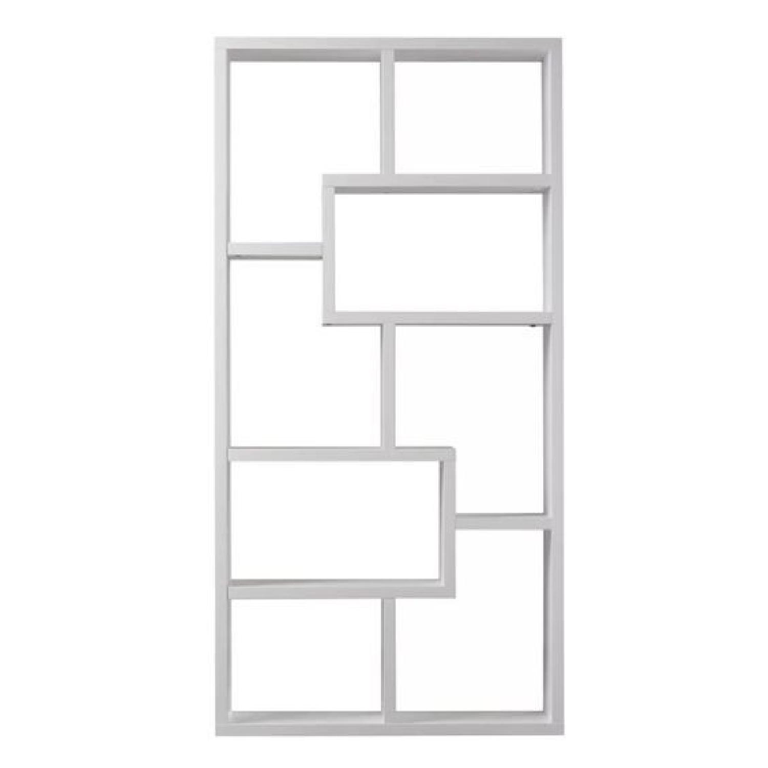 Seller's Notes:Only selling because I am moving to a new apartment that is already furnished! Cut the clutter in your living room, office, or den with this five-tier ladder inspired bookcase. Showcase your favorite books or decorative pieces all in one place. It is crafted from a combination of solid and manufactured wood with wood veneers. A tip-over restraint device is included with this bookcase.