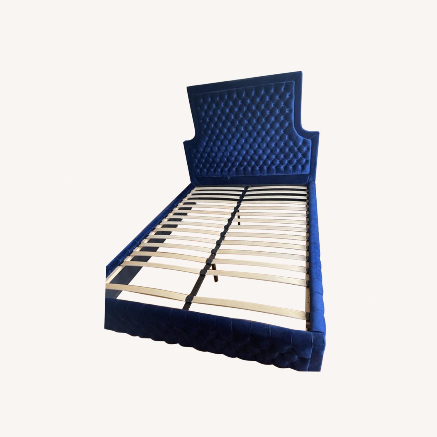 Seller's Notes:Elegant and eye-catching, the stunning Sedona bed from Meridian Furniture is the perfect addition to any space. The bed is upholstered in rich Velvet that is complimented by a unique all over tufted design. Strength and beauty is guaranteed with a solid wood frame and chrome legs. Luxurious Velvet Detailed Deep Tufting Chrome Legs Full Slats (Box Spring Not Required) Easy Assembly Note: Two additional wooden slats will be provided. If you would like to attach them to the frame you will need to order a set of the black plastic grips to attach as I lost one in move. They are available and super cheap on Amazon. This is why you will see toward the foot of the bed a gap with 2 missing slats. Because it didn't effect the sturdiness of the bed I just never got around to purchasing a set of black plastic grips to attach the 2 additional slats. So its up to you!
