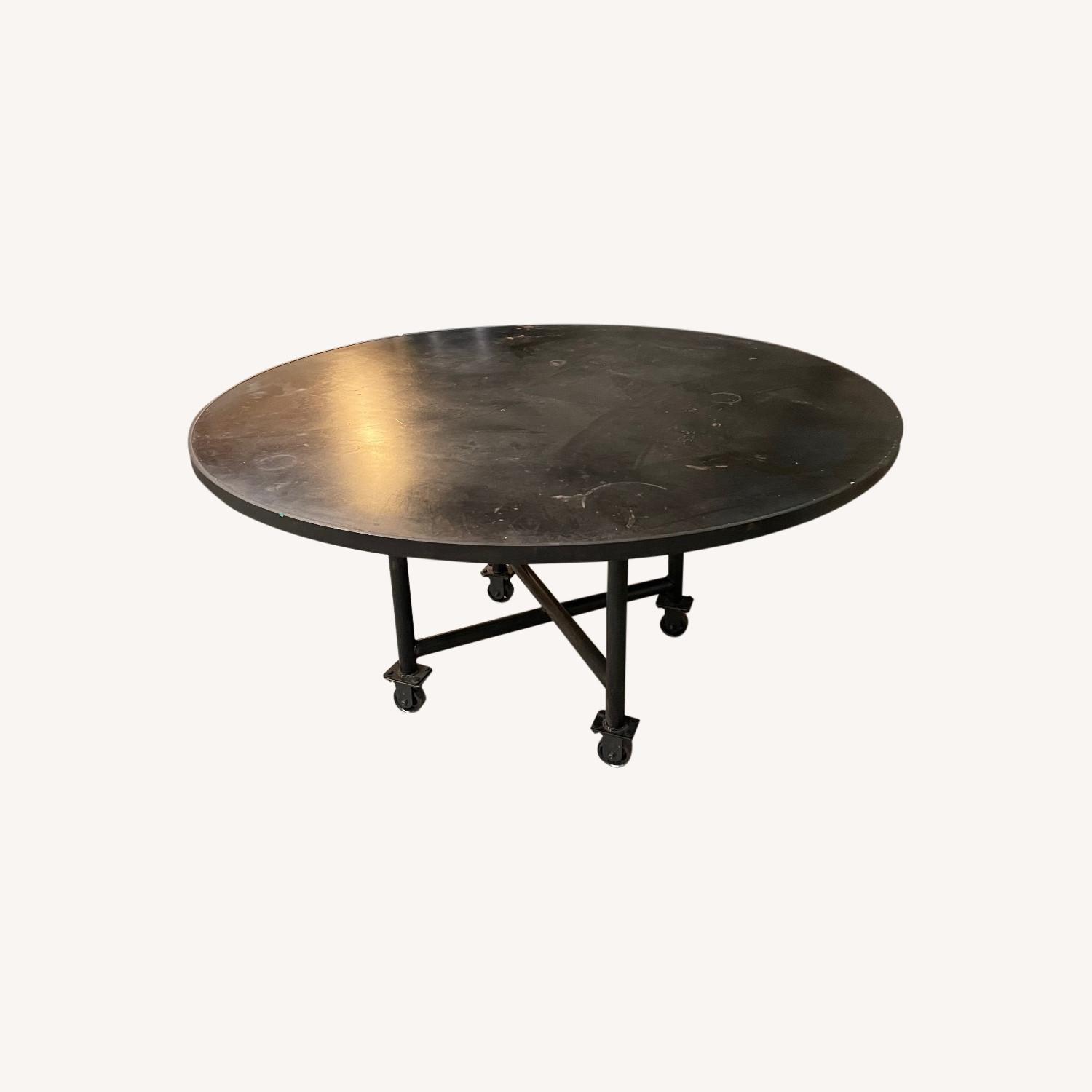 Seller's Notes:I purchased this table five years ago, but then I moved from New York a year later, with other furniture and had to move it to the basement since there was no room for it any longer. It is like new, having barely been used for the last 3 years. The stains on the top are from water glasses and become part of the patina of the metal. Otherwise it is in perfect condition and is on wheels so it can be moved.
