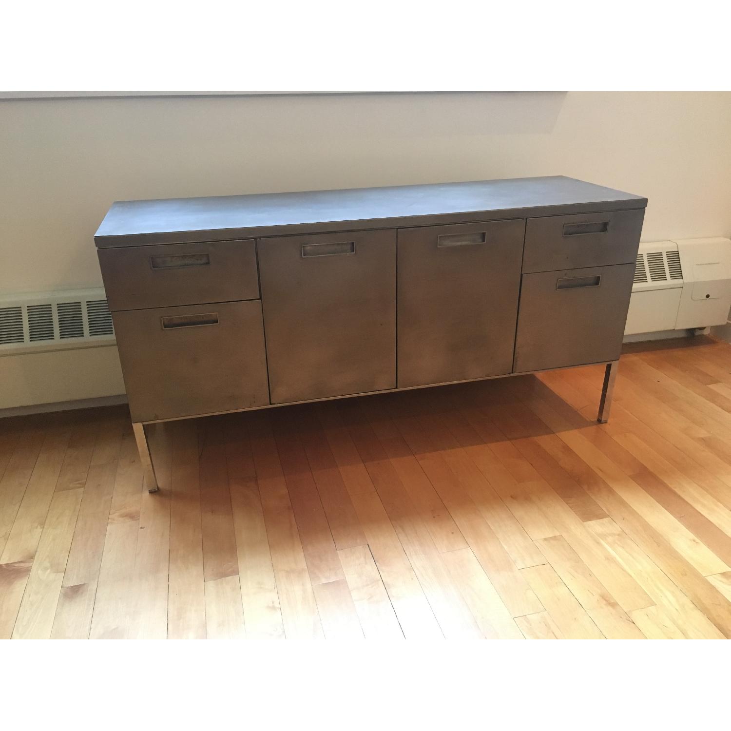 Seller's Notes:Metal credenza with 4 drawers on the side and one main compartment in the middle. The drawers have the option of functioning as filing cabinets. The credenza is extremely sturdy, solid, and easy to clean, thus capable of withstanding a lot of hard use, pets, children, moving, etc.