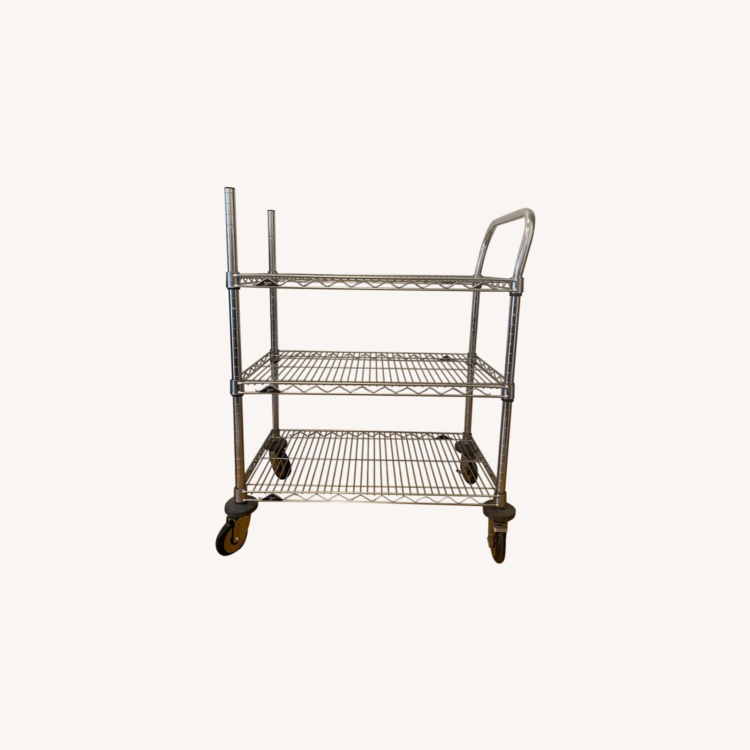 Seller's Notes:Container Store Chrome-plated solid steel construction Each shelf supports up to 500 pounds Light assembly required; hardware included NSF-rated