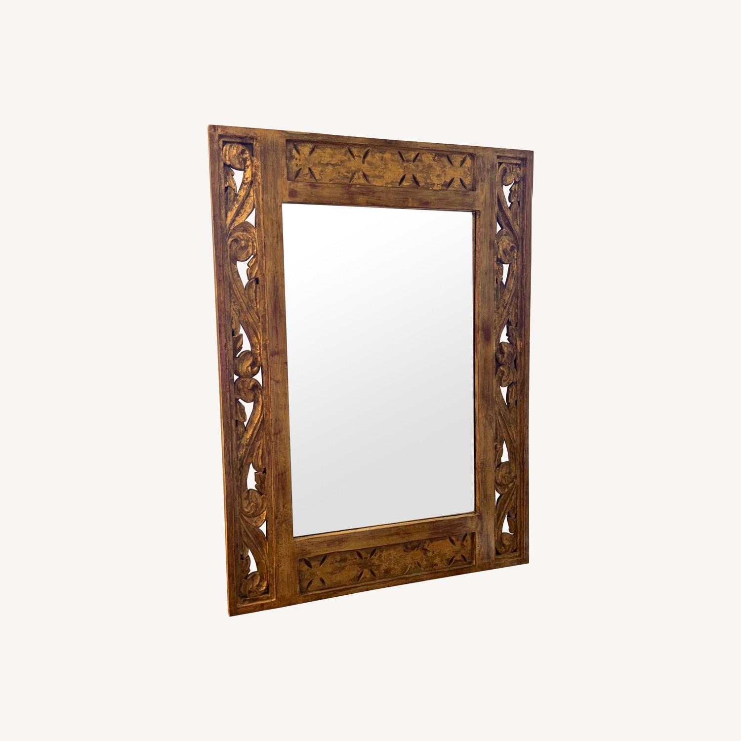 Mexican Carved  Faux Gold Wood Wall Mirror - image-1