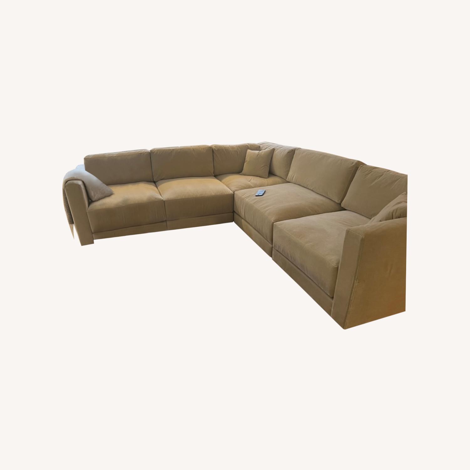 Seller's Notes:Brand new couch! Never touch. Just review this week. It doesn’t go with the ascetic of our apartment and would like to sell. Beautiful custom Michael Dawkins sectional. Purposely designed for easy moving in 5 sections.