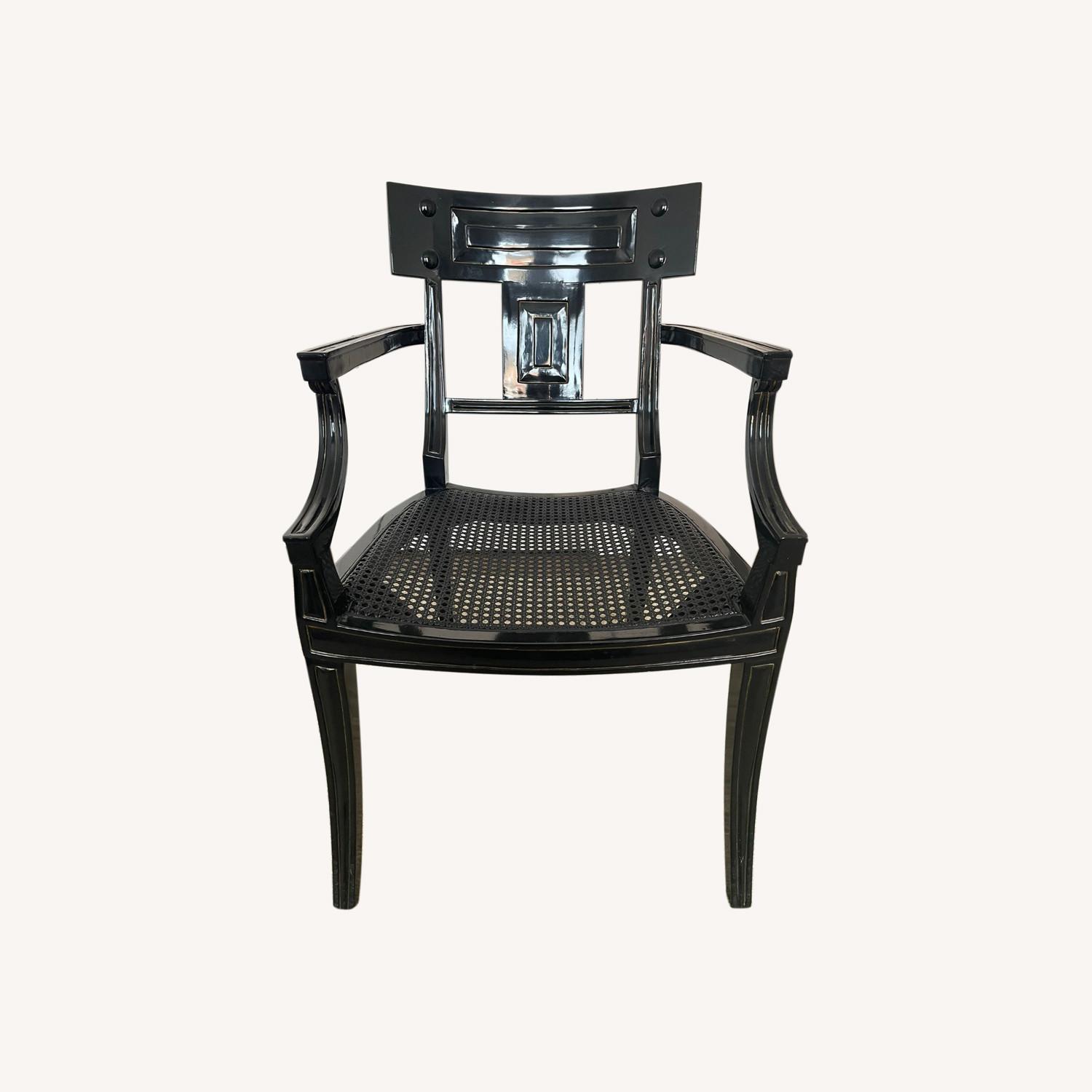 Seller's Notes:Antique Michael Taylor Klismos Arm Chair for Baker Black lacquered walnut frame The chair is in very good condition overall - the seat perfect and the frame has some scuffs.