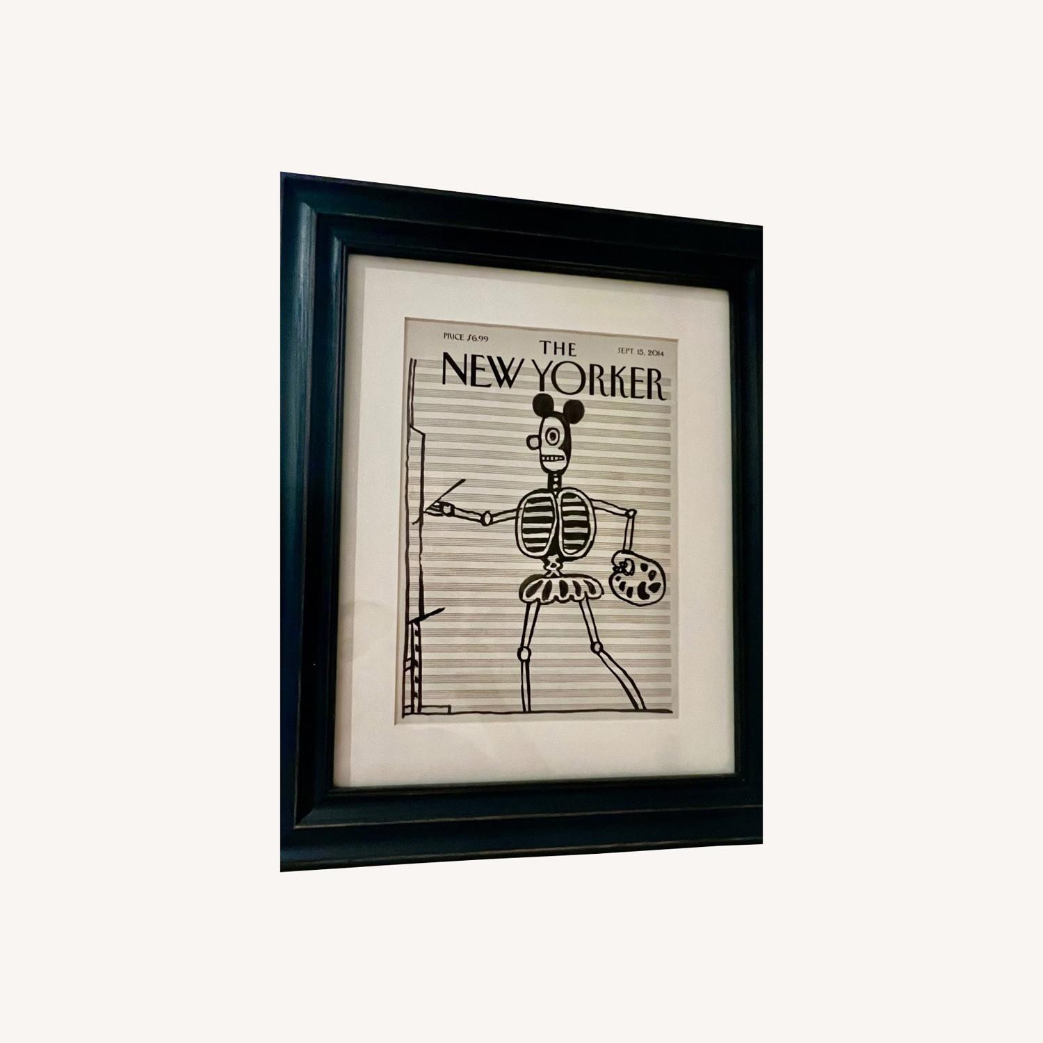 Seller's Notes:New Yorker cover 9/15 2014 Saul Steinberg: Mickey Mouse skeleton at the ease. Custom Frame in Blue Michael's Wood frame White mat