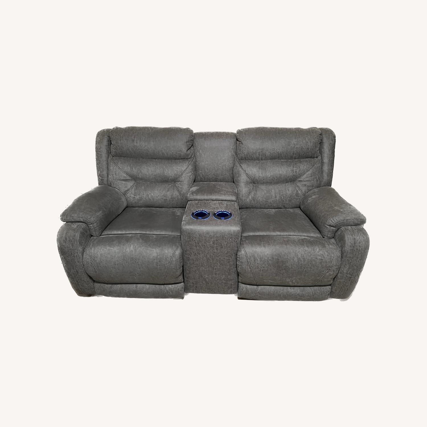 Seller's Notes:I bought this Loveseat 2 years ago from My Sofa Factory (specialized in custom-made furniture). This loveseat is made out of microsuede material. It's very durable and the seat cushion is soft ad relaxing. Overall, it's in excellent condition. No tears, stains, or any other damage. This loveseat offers these features: - Full power reclining mode (Headrest, backrest, and footrest fully reclined) - Power Adjustable Headrest - Power Adjustable Lumbar Support - Only Footrest Recline - USB port