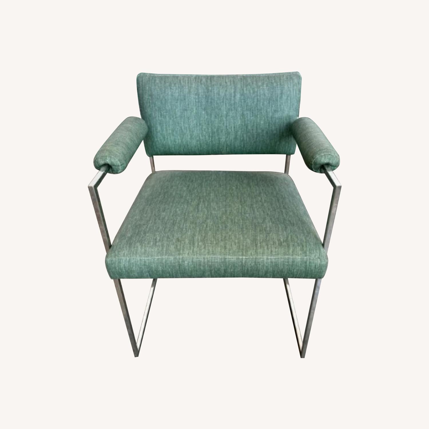 Seller's Notes:Awesome set of eight vintage chrome “Thin Line” dining chairs designed by Milo Baughman for Thayer Coggin, circa 1970s. The 1188 chair by Milo Baughman is touted as being his favorite chairs. He even chose it to use in the home of his business partner Thayer Coggin. Featuring Milo's signature thin and airy squared off tubular chromed steel frames that support the seats, and it gives the impression that the person sitting is floating. Thick comfortable padded seats and backs with padded arms professionally upholstered in a thick, plush, luxurious green fabric, which gives the chairs even more elegance. Designed in the 1960's but still looks fresh, a mark of a timeless classic. These dining chairs will elevate your experience at the table and would work great in a Mid-Century Modern home or penthouse apartment but could also look fantastic in a contemporary, Hollywood Regency or Postmodern room. Also consider mixing it up in a traditional, classical or art deco room with a splash of juxtaposition. This Listing is for all (8) chairs --each of them is an arm chair. (8) Armchairs Unmarked - no label or maker's mark on the chairs