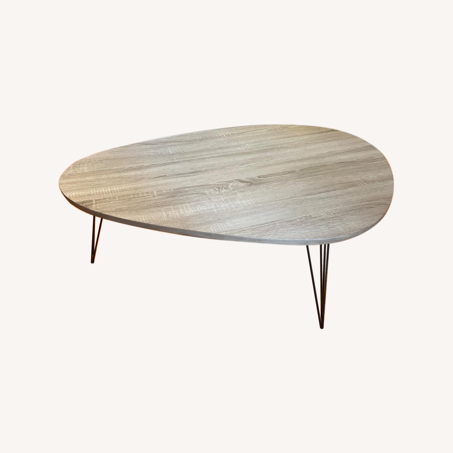 Seller's Notes:Beautiful oblong coffee table - grey oak too and black metal legs.