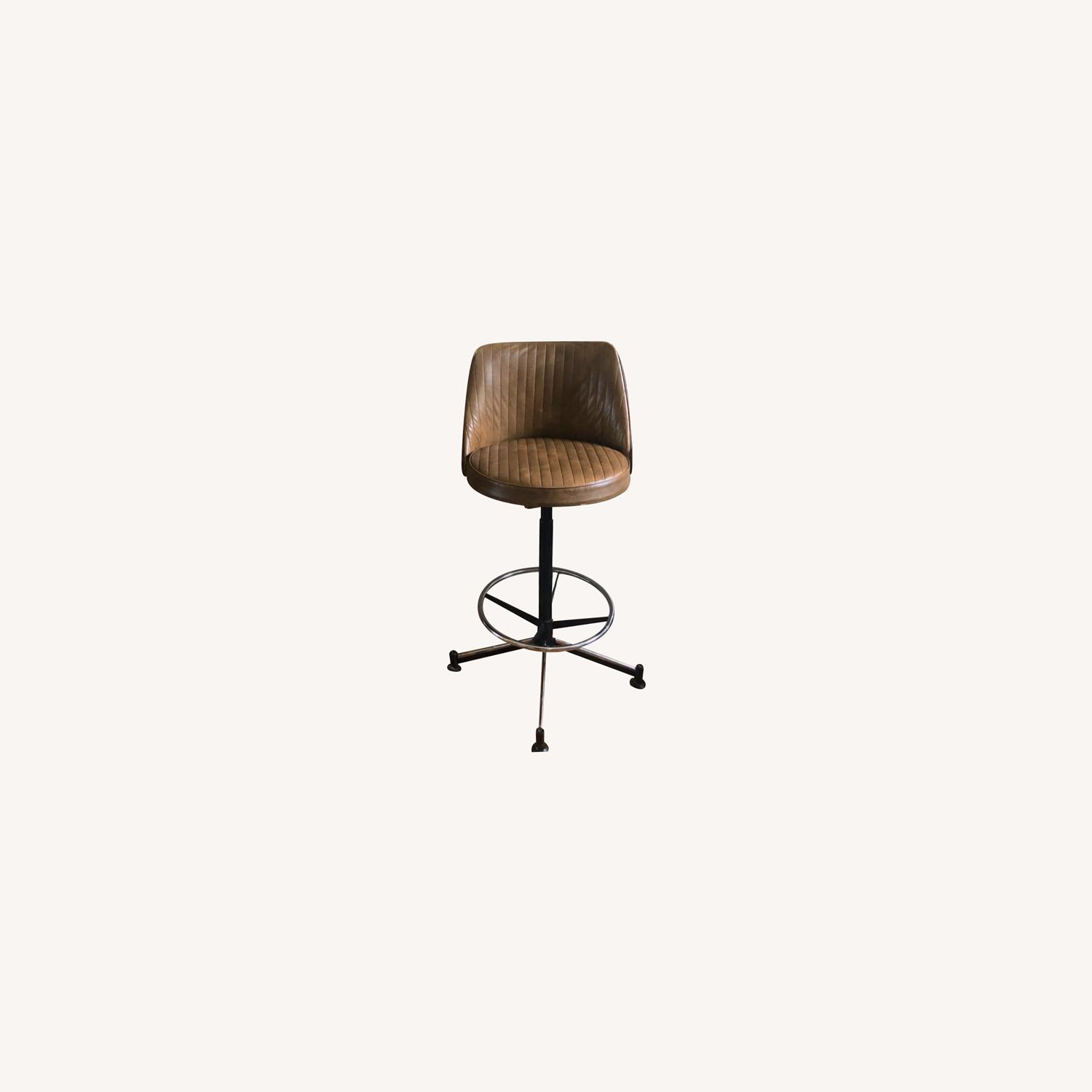 Seller's Notes:Mid Century Cosco Swivel Bar Stools - Set of 4! Should be either vinyl or leather, the seats feel amazingly soft and the 4 bar stools are in amazing condition with a little bit of minor blemishes, nothing a little restoration can't fix. At the corners of the stool, there is only one stool that has small spots where the inside stuffing is showing, but other than that, rest of the stool corners, only a little bit came off.
