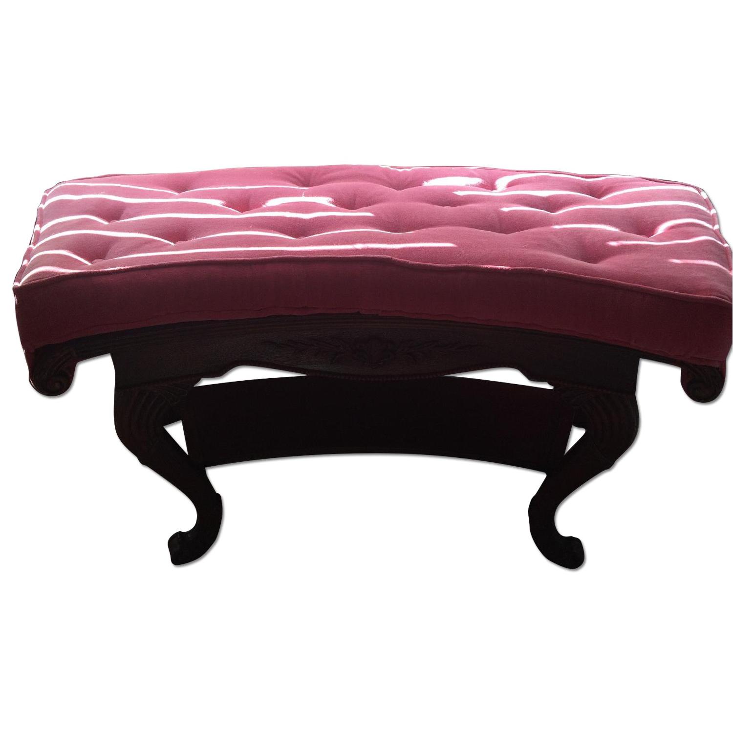 Seller's Notes:Custom apolstered watermelon pink bench with hand carved base. Footed. Original source from Eastern Shore Estate. Purchased less then one month ago at St Elmo's Gallery in Bethesda and love but color does not fit with room looking to display. Great condition and peice!!