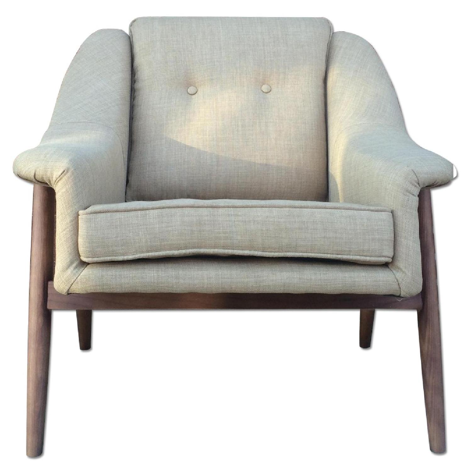 Seller's Notes:Mid Century Danish Modern style Lounge Chair / Arm Chair / Sofa Chair. This is more like in Beige color. Also Available in Grey and Green. Please note, color may vary due to light. Solid Wood Frame in Walnut with Fabric upholstered. Dimension: 29"H (18" seat height) x 31"W. Measurement for depth not available. If you need it, please let me know. Can deliver for $20 in Brooklyn. Welcome to come take a look.