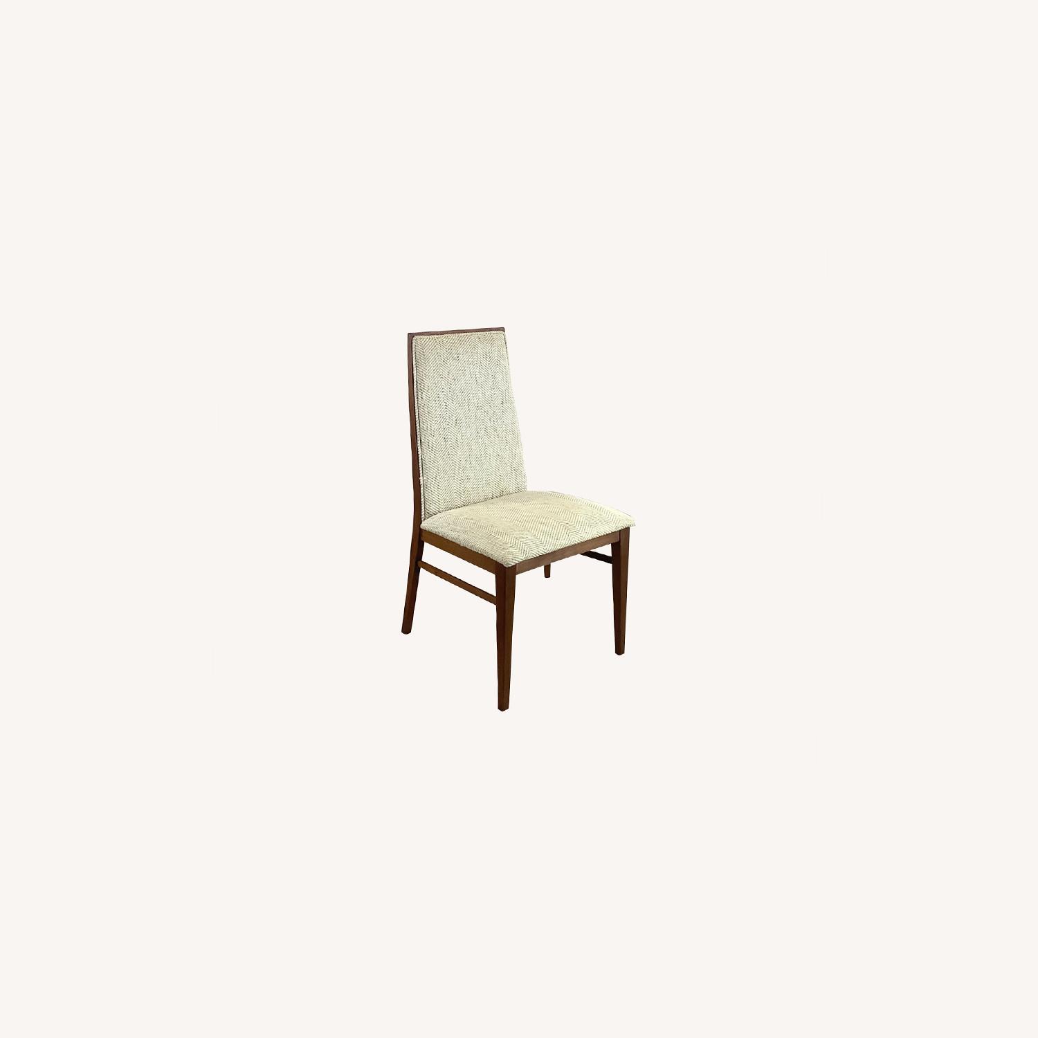 Seller's Notes:Thisset of four mid-century high back dining chairs by Dillingham furniture feaatures unique mid-century modern design and sturdy construction. The upholstered seats and backs add comfort to the subtle set of walnut frame chairs. The highback design makes a substantial addition to dining area or kitchen, holding space while offering true comfort for regular use. Matching walnut dining table also available, message seller for details. Dimensions: 19.25w 20d 37h 18sh Condition: age appropriate wear, vintage finish worn, scuffs/scratches, edge wear/chips, interior marks, fabric worn, discoloration, see photos.
