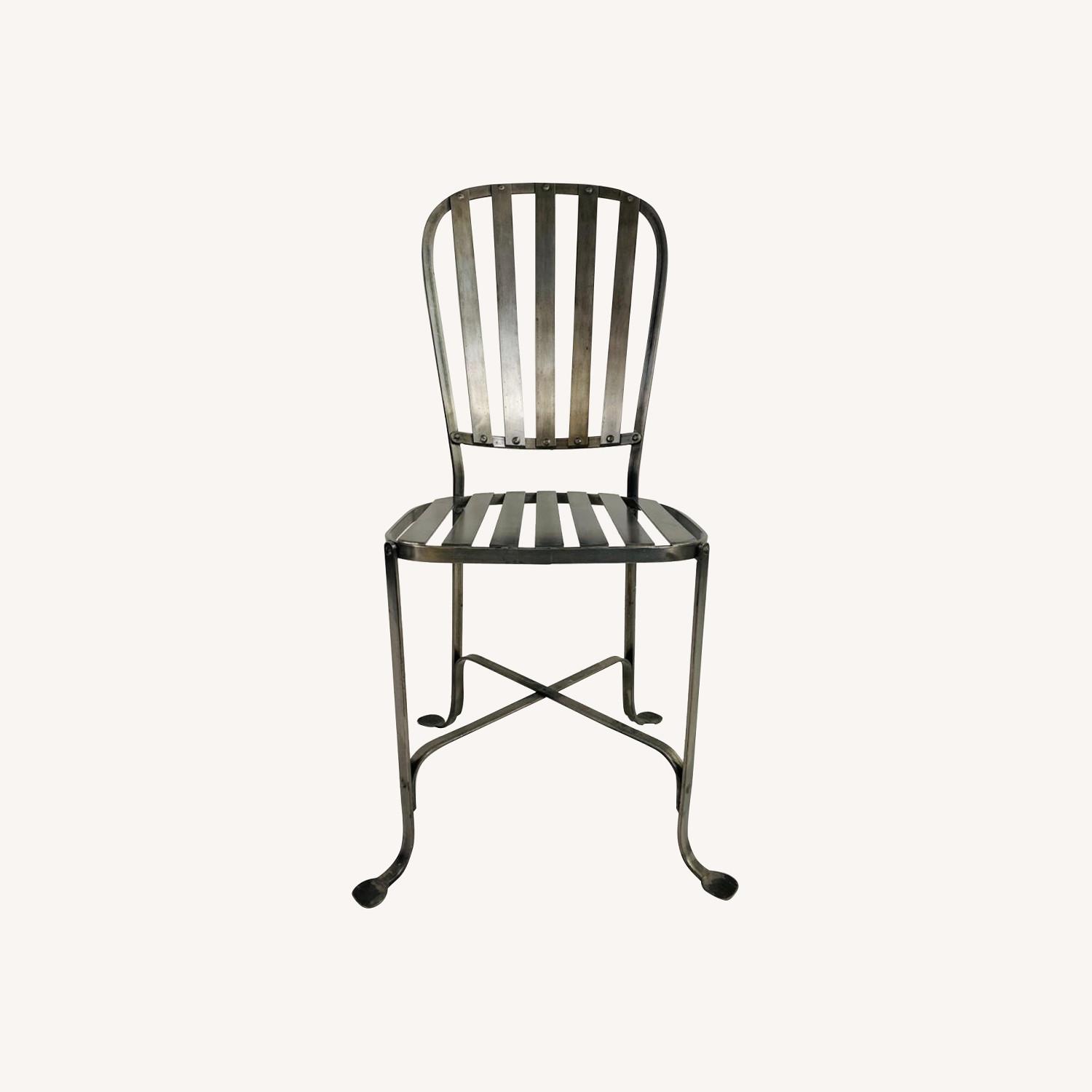 Seller's Notes:Mid-Century Hollywood Regency Style Metal Pewter Finish Chairs Manufactured : 1960