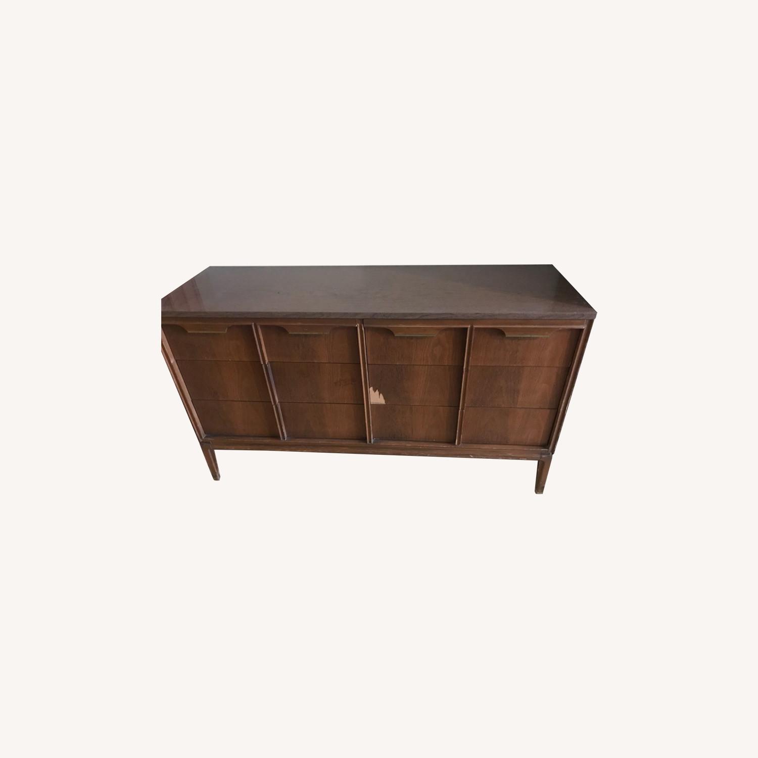 Seller's Notes:Was gifted this dresser, and I love it, but I don't have the time for the TLC it needs. Drawers have been lined and they pull great. Top is veneer. Big chip in one drawer, and some scuffing on the legs, but overall pretty solid piece.