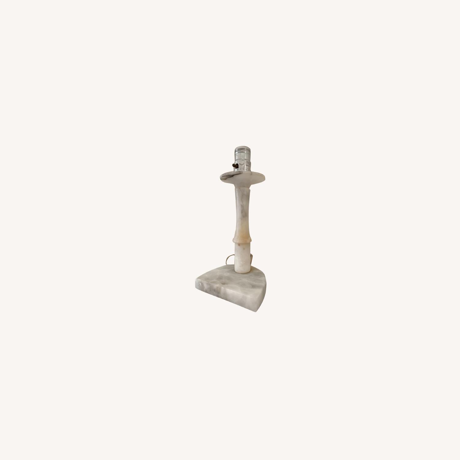 Seller's Notes:This is a simple white marble lamp with a rounded base, turned shaft and a flared top. there are no markings at the base so it could be hand made. My great uncles had the skills and tools to make it. Needs re-wiring.