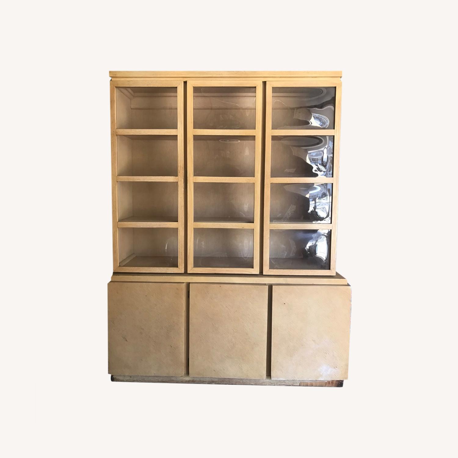 Seller's Notes:Mid-Century Modern Bubble Glass Cabinet, Merton Gershun for American of Martinsville 52 x 69 x 15 inches blonde oak Two parts, for easier transportation. Some wear and tear, but it sells for $3K on FirstDibs
