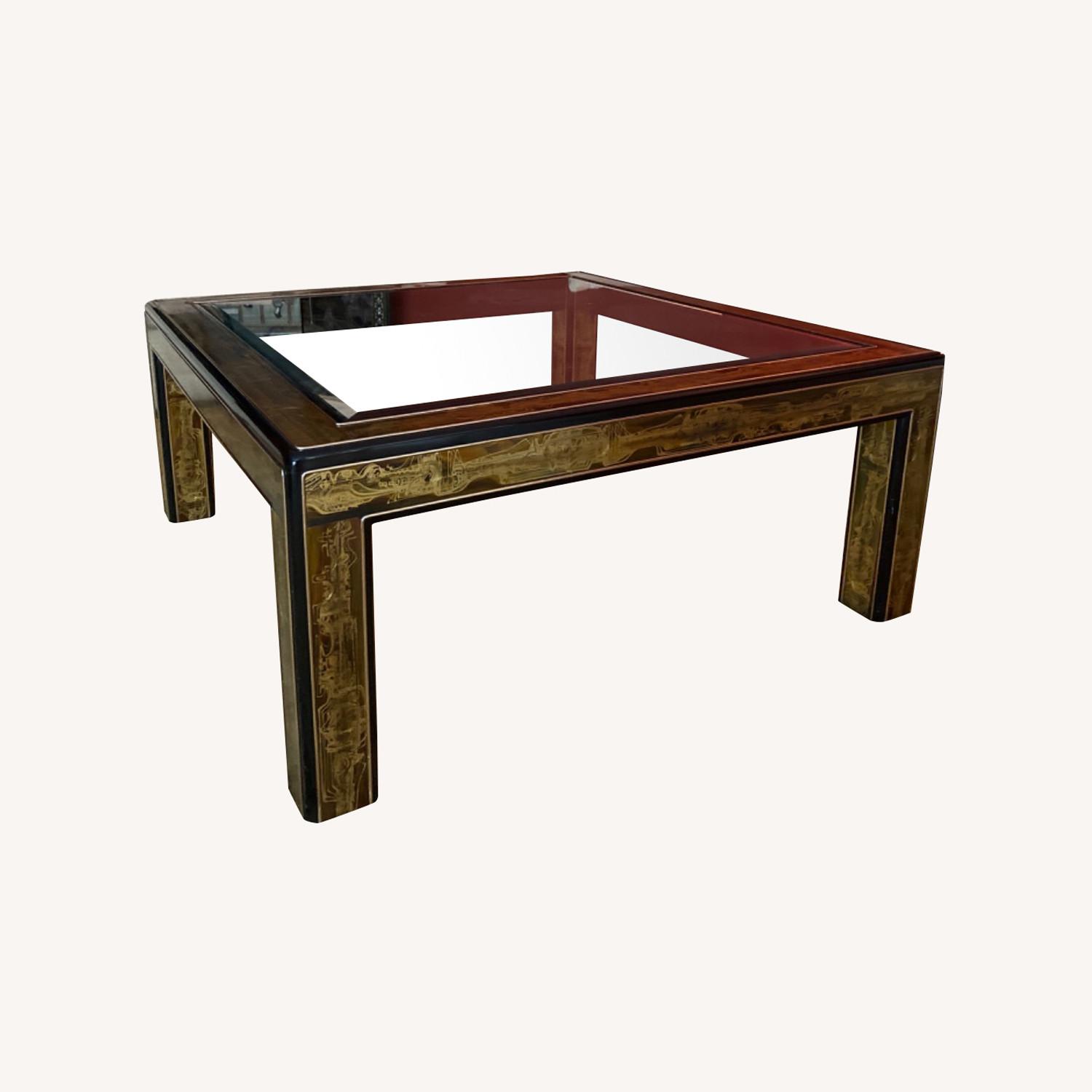 Seller's Notes:Baker vintage acid etched Brass (mid 70S) master craft coffee table. In mint condition.