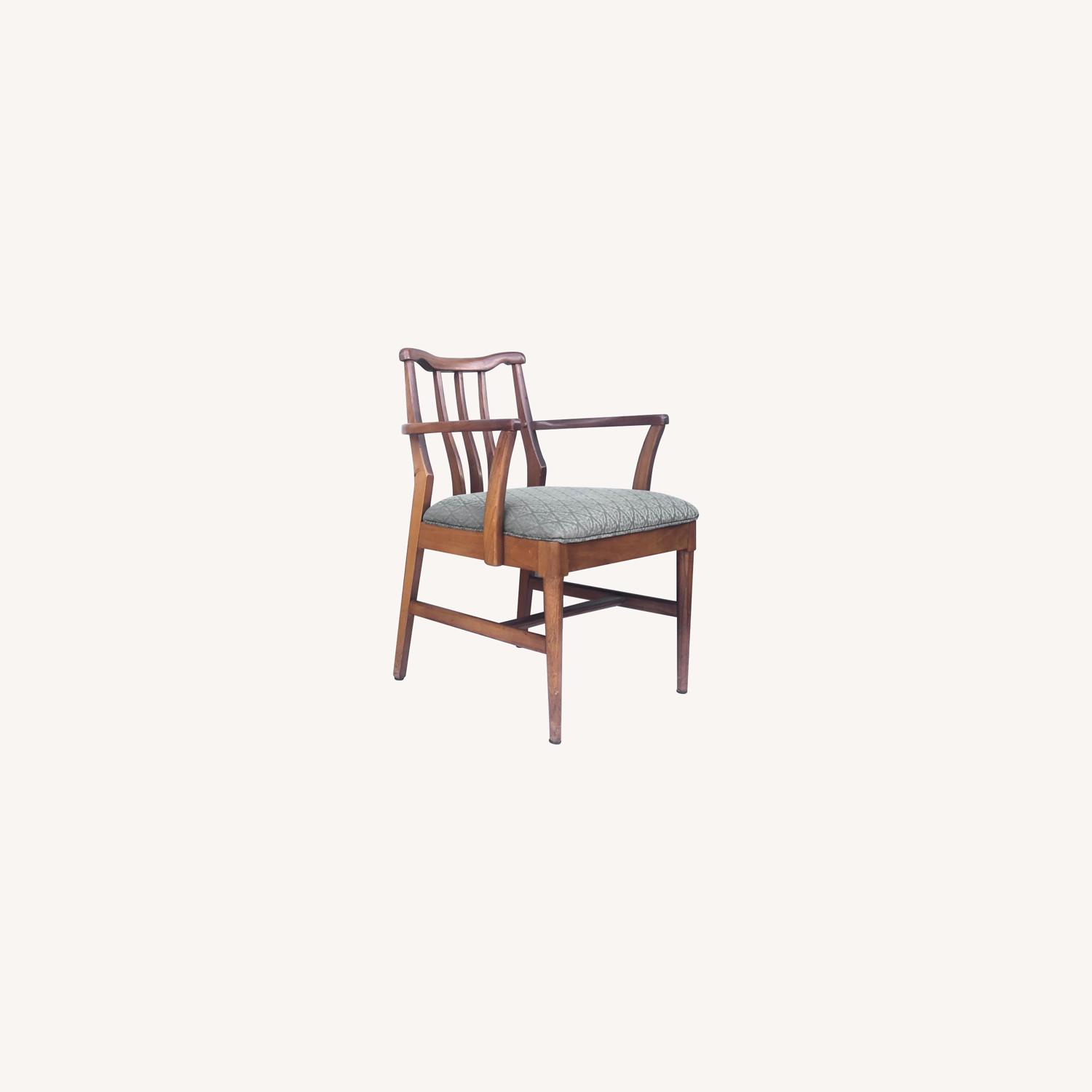 Seller's Notes:This striking set of six sculpted walnut dining room chairs includes four side chairs and two arm chairs for the heads of the table. Comfortable upholstered seats and uniquely sculpted seat backs make this matching set of six mid-century dining chairs the perfect mix of style and usability. Matching dining table also available, contact seller for details. Dimensions: Side: 19w 20d 32.5h 18.5sh Arm: 21.5w 20d 32.5h 18.5sh 26ah Condition: age appropriate wear, vintage finish/fabric worn in areas, some scuffs/scratches/stains/edge wear, kick marks- see photos. Shipping: FREE LOCAL PICKUP FROM 07728 NJ- SHIPPING cost is a a PLACEHOLDER and varies based on location- blanketwrap shipping quotes can be provided- please send zip code BEFORE purchase for more information! Orders placed without prior discussion of shipping cost will be cancelled and refunded within 24 hrs as per customer/seller agreement.