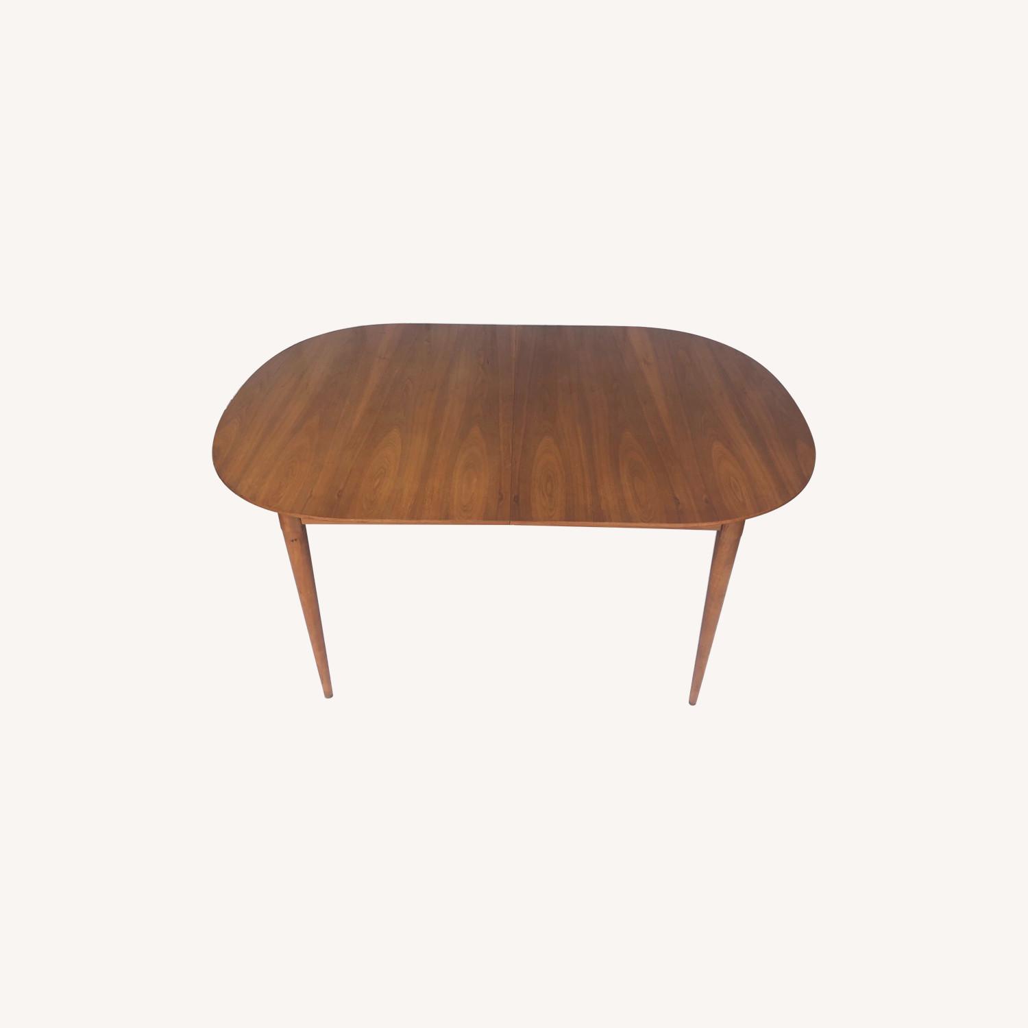Seller's Notes:This striking mid-century dining room set comes complete with THREE extra leaves, expanding easily from 59 inches wide up to 98 inches wide this ovular dining room table boasts it's original wood finish. This stylish oval dining room table is the perfect addition to any home interior, with quality construction. reliable enough for every day use and timeless style and space for elegant dinner service. Dimensions: Table: 59w-98w 40d 29.25h- (3) 12w leaves Condition: age appropriate wear, vintage finish worn in areas, some scuffs/scratches/edge wear- see photos.