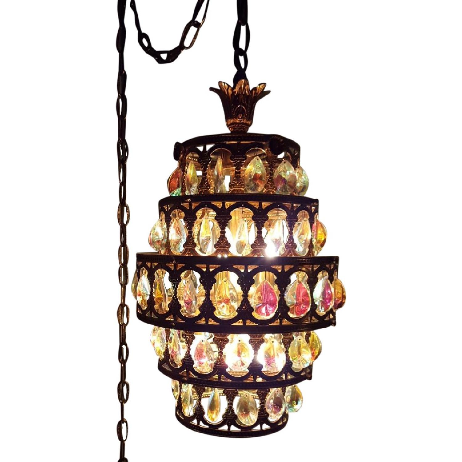 Seller's Notes:PAIR These lamps have been hanging in the bedroom pictured since the '70's. The homeowner has given up many of her things due to downsizing to a smaller home. Her move is your opportunity to own this pair of treasures. The electric wire is woven in the chain so that you can run it down the wall and plug it in as pictured. No need to pay an electrician. The ipitamy of mid century modern for all you folks who love mid century!