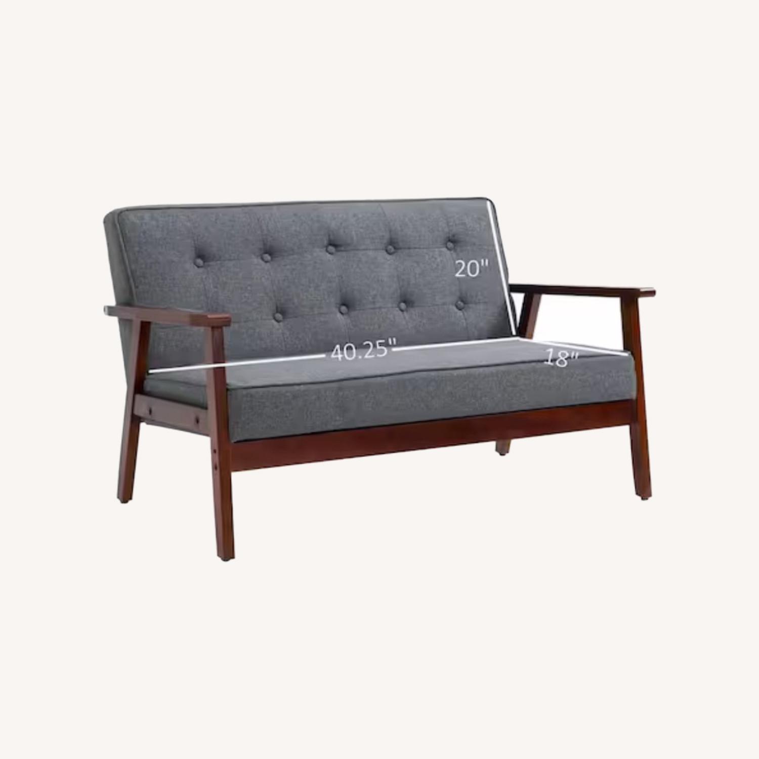 Seller's Notes:This is a set that includes a love seat and two chairs. Linen Fabric, medium gray color. It has not been used that much, gently used. It was purchased for a studio / office room. I loved this set but unfortunately have to downsize and move to a much smaller house where I don’t have place for this fabulous set. I’m hoping it can be used by someone who can enjoy it and appreciate it.