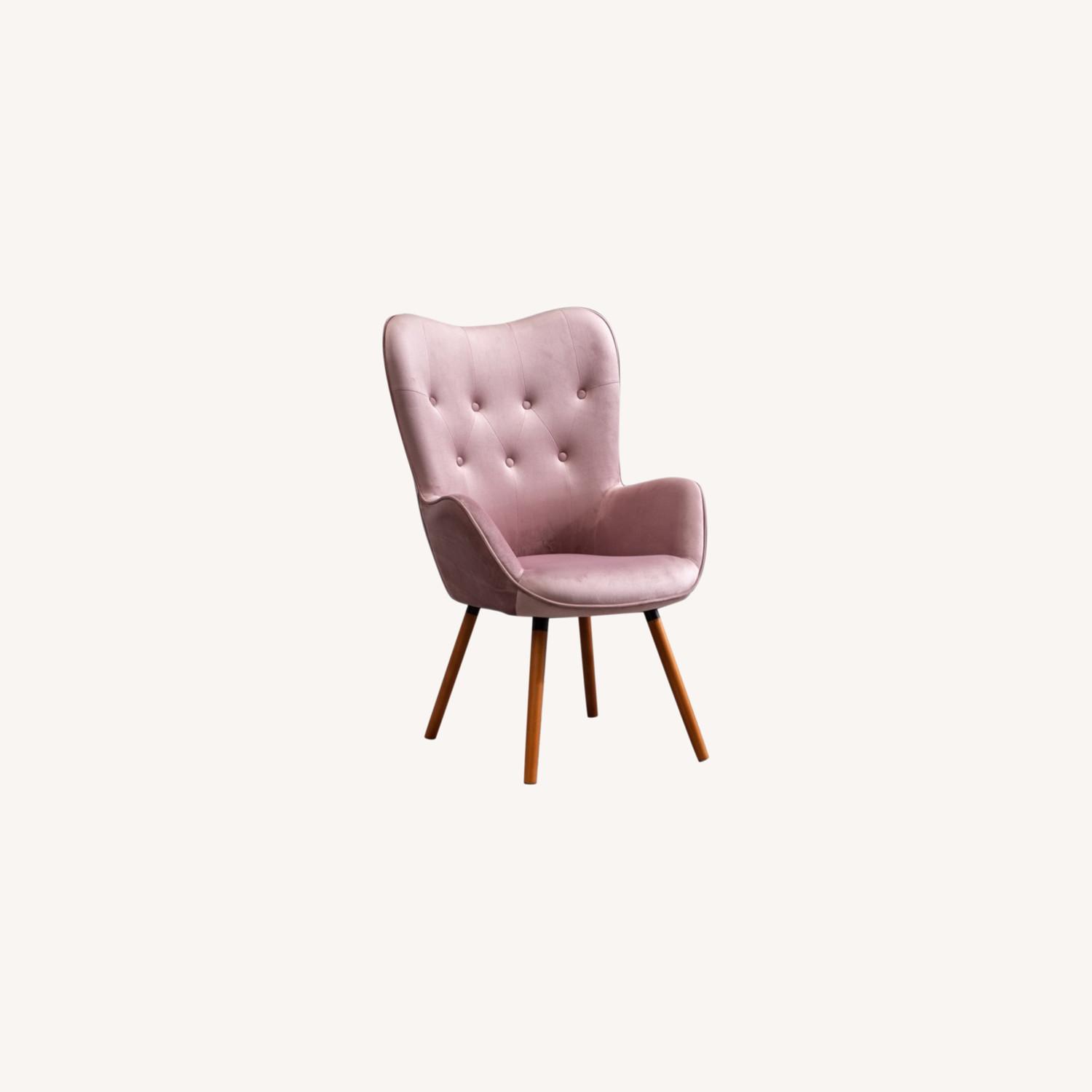 Seller's Notes:This is a beautiful mauve velvet accent chair that I adore! I am changing my decor and it unfortunately no longer suits the color scheme. It is only one year old and it in excellent condition, it was more of an accent and was barely sat in. Here is some additional information: Constructed from wood, the slim brown legs perfectly accent the over-sized back and plush seat. Silky velvet upholstery covers the chair and is finished with classic button tufting. -High back -High-density foam cushioning -Light brown finish -Button tufted Dimensions: Overall: 26.75 inches wide x 30 inches deep x 41.5 inches high Seat: 17.5 inches wide x 20 inches deep x 20 inches high