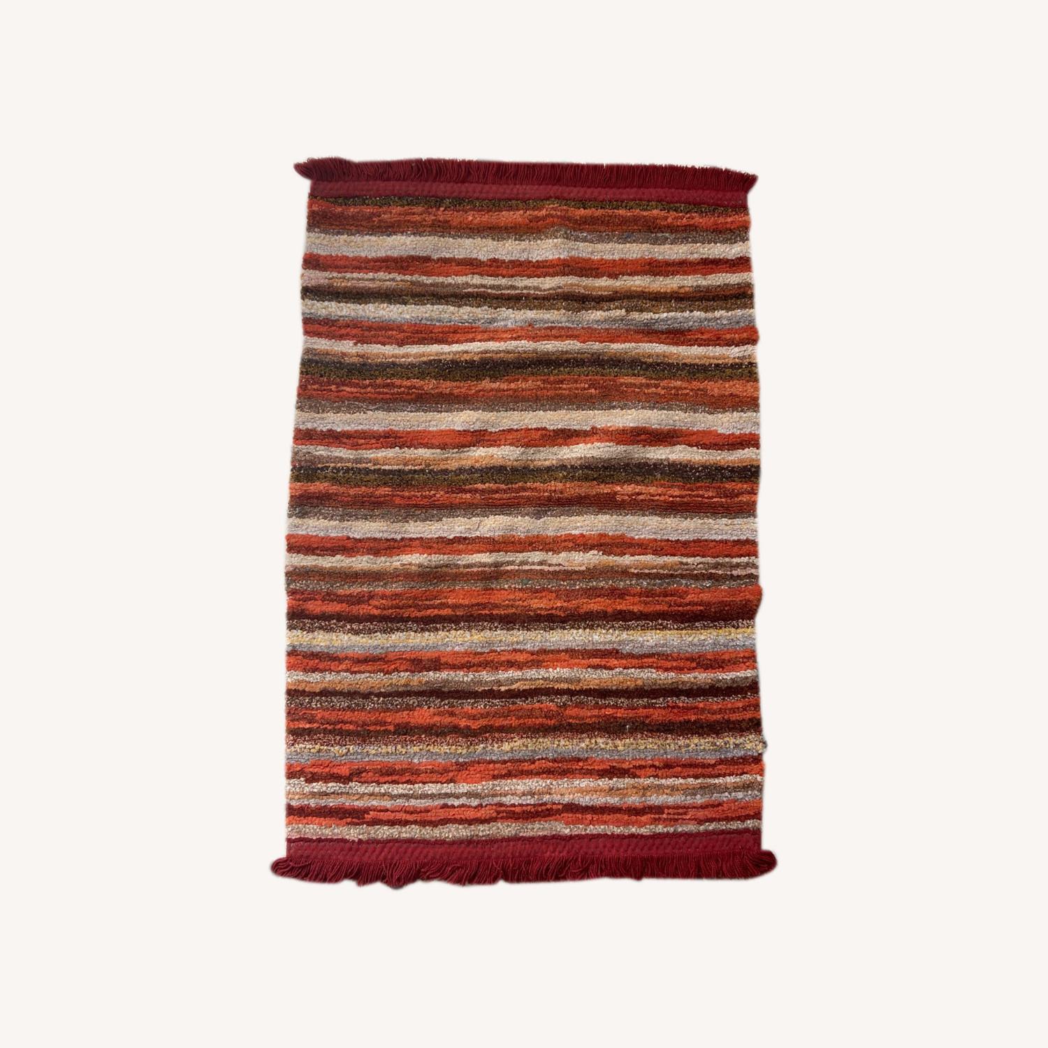 Seller's Notes:Vintage 1970s Mid Century Modern Rag Wool Chenille Rug, very soft and cozy. Warm orange and brown colors. Appears handwoven. Light fade, no major issues. Will ship domestically, please ask for details. Size: 36"x23"