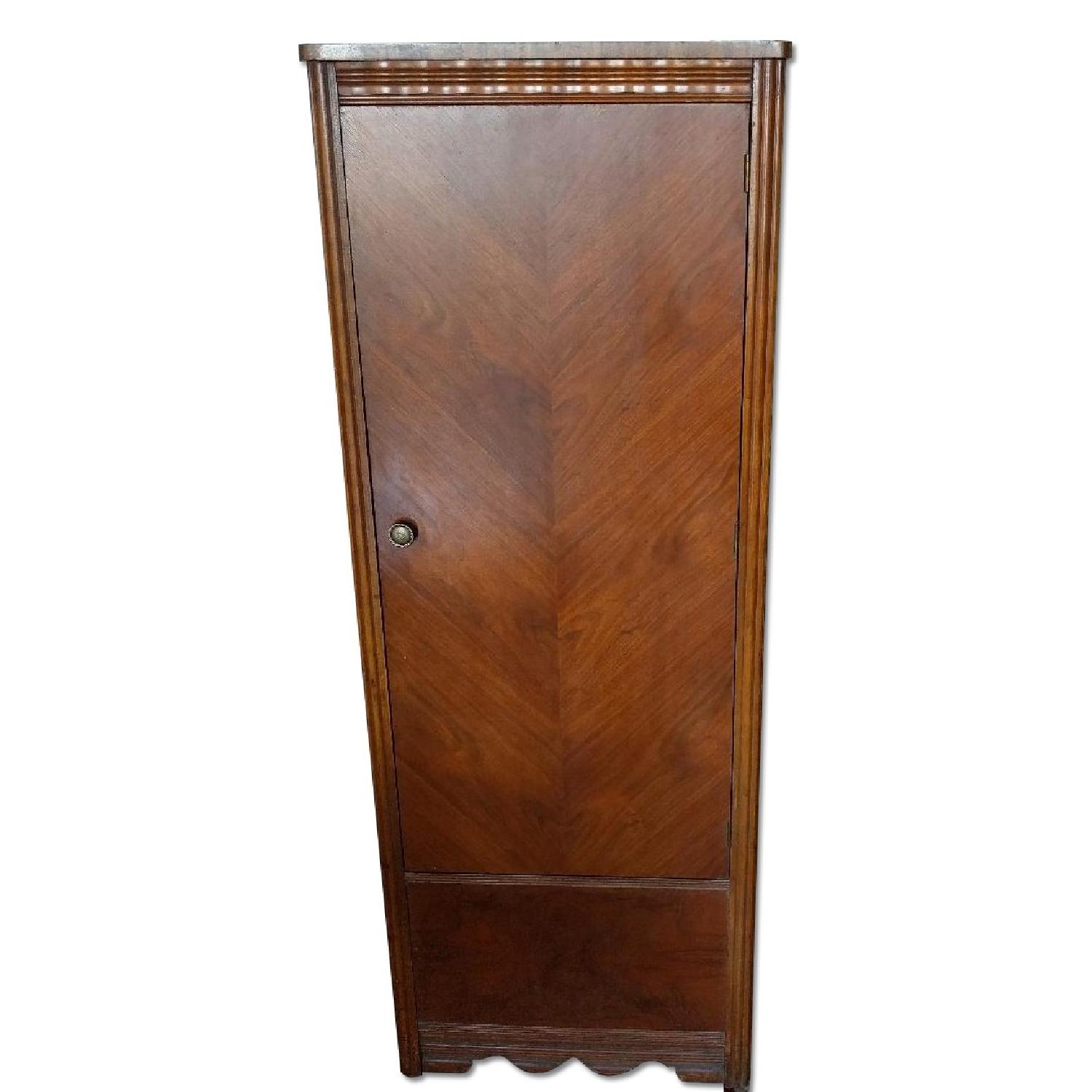 Seller's Notes:I'm moving and selling my beautiful mid-century modern armoire, perfect for people in NYC who have little to no closet space like me (or at least I did in the last place I lived). The front is gorgeous, with the natural grain lining up to form hearts. It's finished on 3 sides so can go anywhere. I believe the inside is cedar, but I'm not completely sure. There are rollers on the bottom so it can be moved anywhere. Of course there's a hanger inside so you can hang your clothes, and lots of space on the bottom for your shoes or other storage. There is minor wear, but nothing that you would not expect on a vintage armoire like this. I'm included photos of the scratches I noticed.