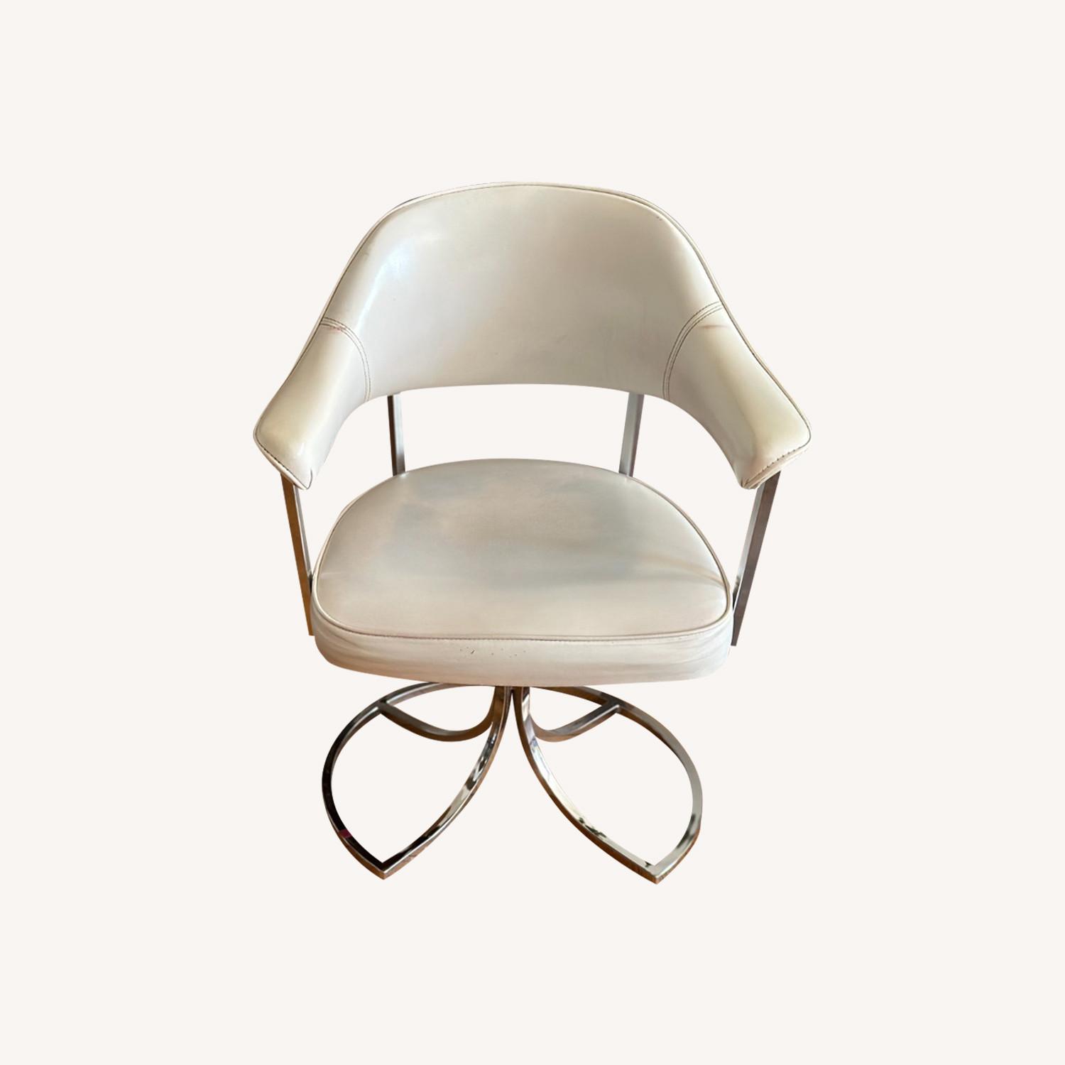 Seller's Notes:$100 for the two chairs OBO. Selling two white mid-century modern swivel chairs. Minor discoloration on seat that would be easy to restore. Perfect for a dining table for two or a home office. Great accent pieces. Brand is unknown.