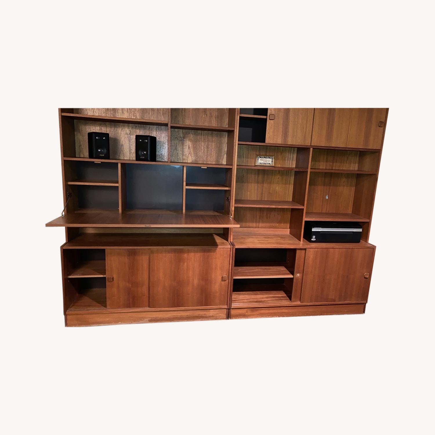 Seller's Notes:Two Teak wall Units. Can be bought separately. One has pull down desk area. Great for storage. Mid Century Modern.