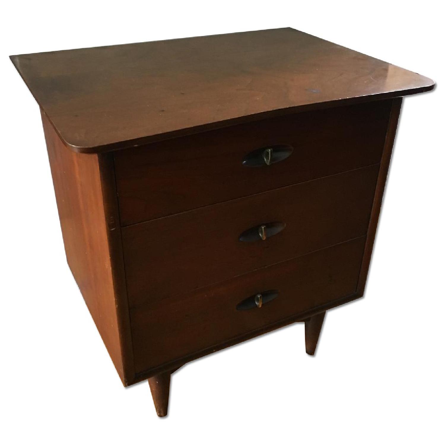 Seller's Notes:We purchased these as nightstands two years ago at a garage sale. They are original mid-century pieces and truly useful, with 3 complete wood drawers and the original hardware. The original owner smoked and left some cigarette burns, but they are not noticeable once you put your things on top (we had a lamp and alarm clock that covered them), although you could refinish them. The walnut is just gorgeous and they are built to last. Will sell each one separately or as a pair.