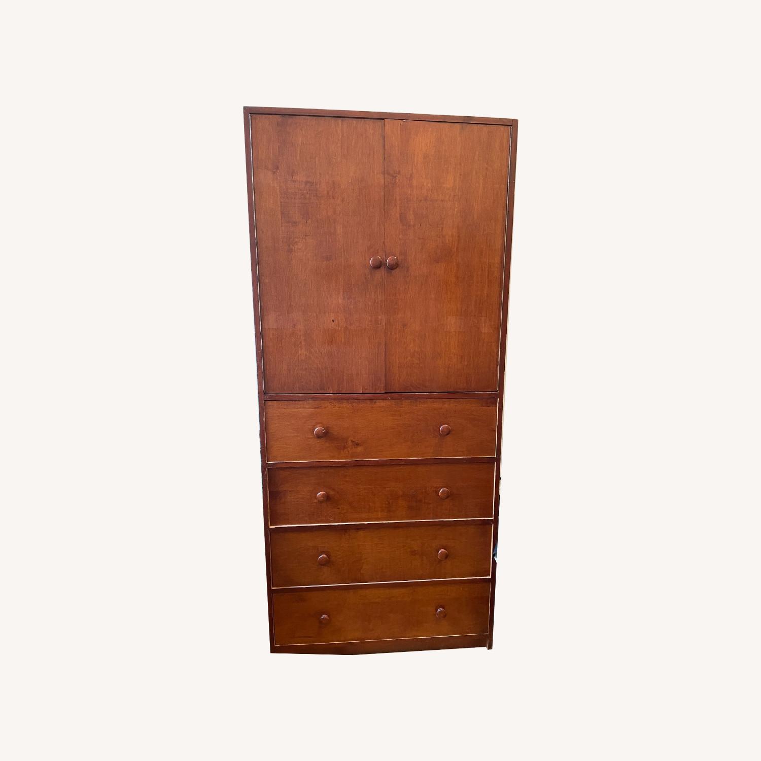 Seller's Notes:Mid Century Modern Wardrobe with (4) spacious drawers and (3) interior shelves. Perfect size for a NYC/Brooklyn Apartment. Has been well taken care of over the years with minimal markings/discoloration.