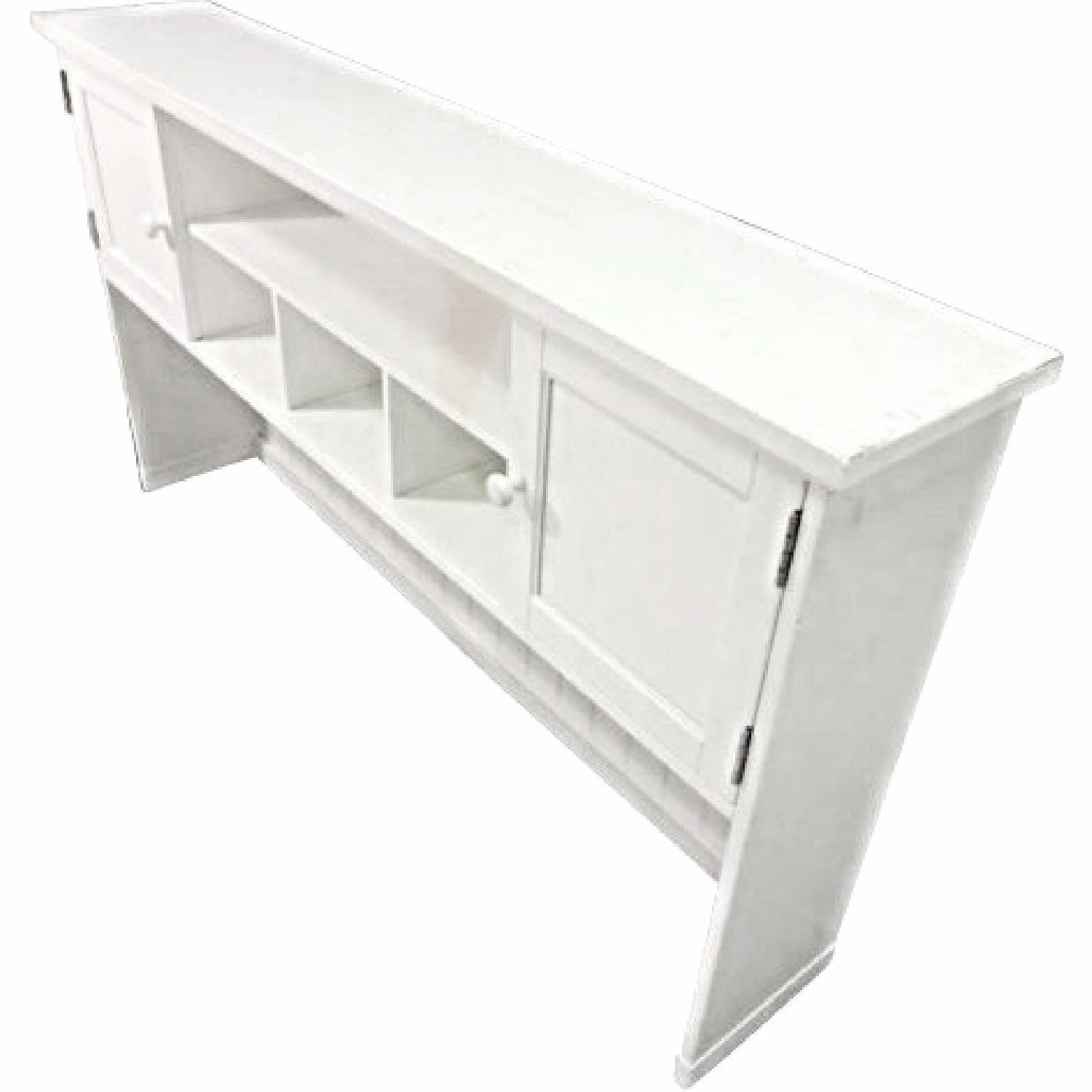 Seller's Notes:On offer on this occasion is an incredible modern white painted wood console with two cabinets. Featuring wide bead board on inside back, a shelf and three cubbyholes. Measures 59 1/8" W x 11 1/2" D x 33" H. This stylish console displays exclusive craftsmanship and one-of-a-kind design. This practical piece has versatile use and will adapt easily to any interior décor. The piece is of excellent quality; a gorgeous item to display with the added bonus of storage. ****Treasure Island Interiors**** Offered in very good vintage condition; minor signs of use consistent with the normal, residential employment it has seen. Some scratches and minor surface wear to top. Please view the images provided closely to confirm the condition and outstanding appearance of the console, as they are part of the description. A more elegant, exquisite console is difficult to imagine. Comes from a clean, non-smoking, pet-free home. This is a great opportunity to purchase this beautiful and practical piece at a fraction of its original cost, and we have no doubt it will serve and delight its new owner for many years to come.