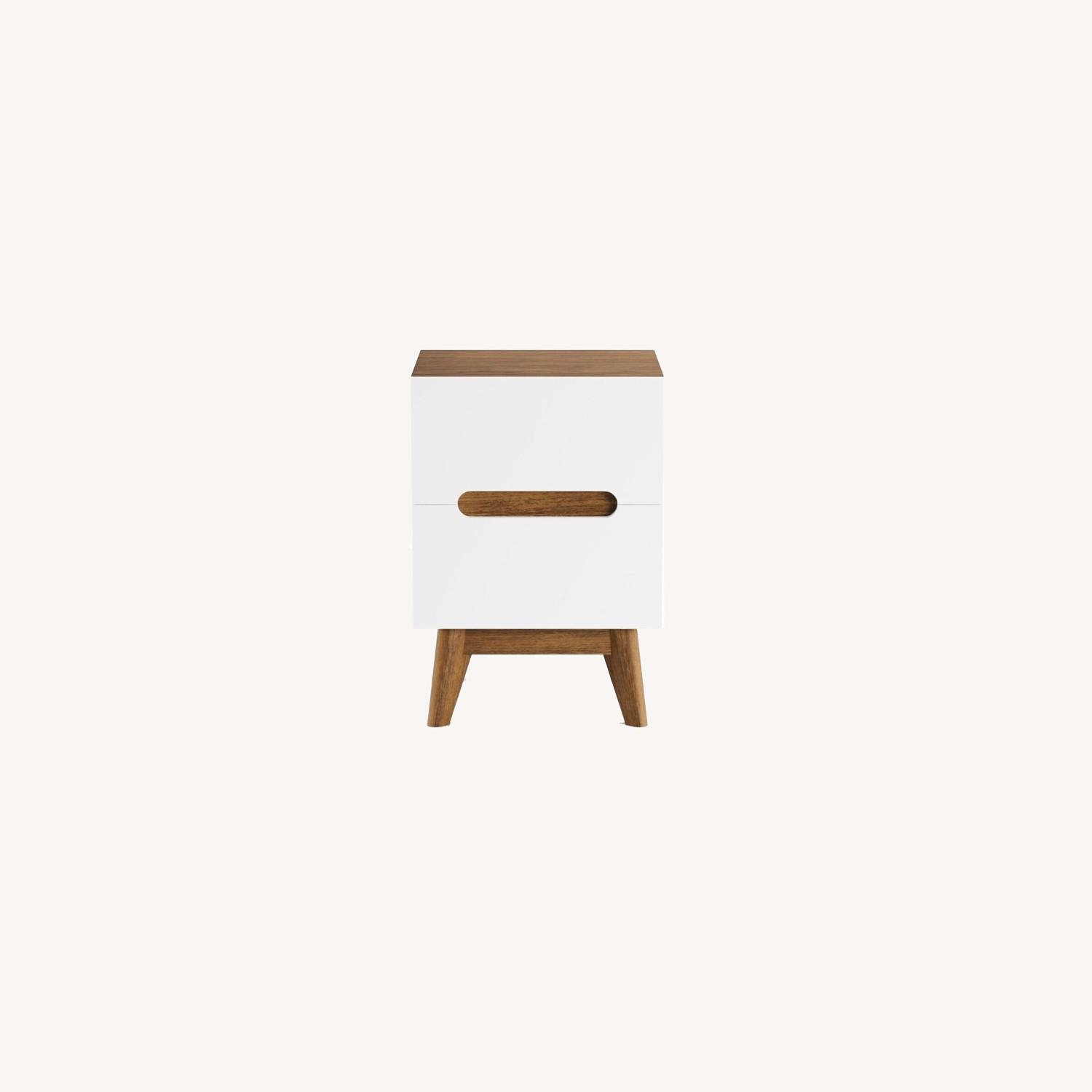 Mid-Century Modern White/Walnut Finish Nightstand