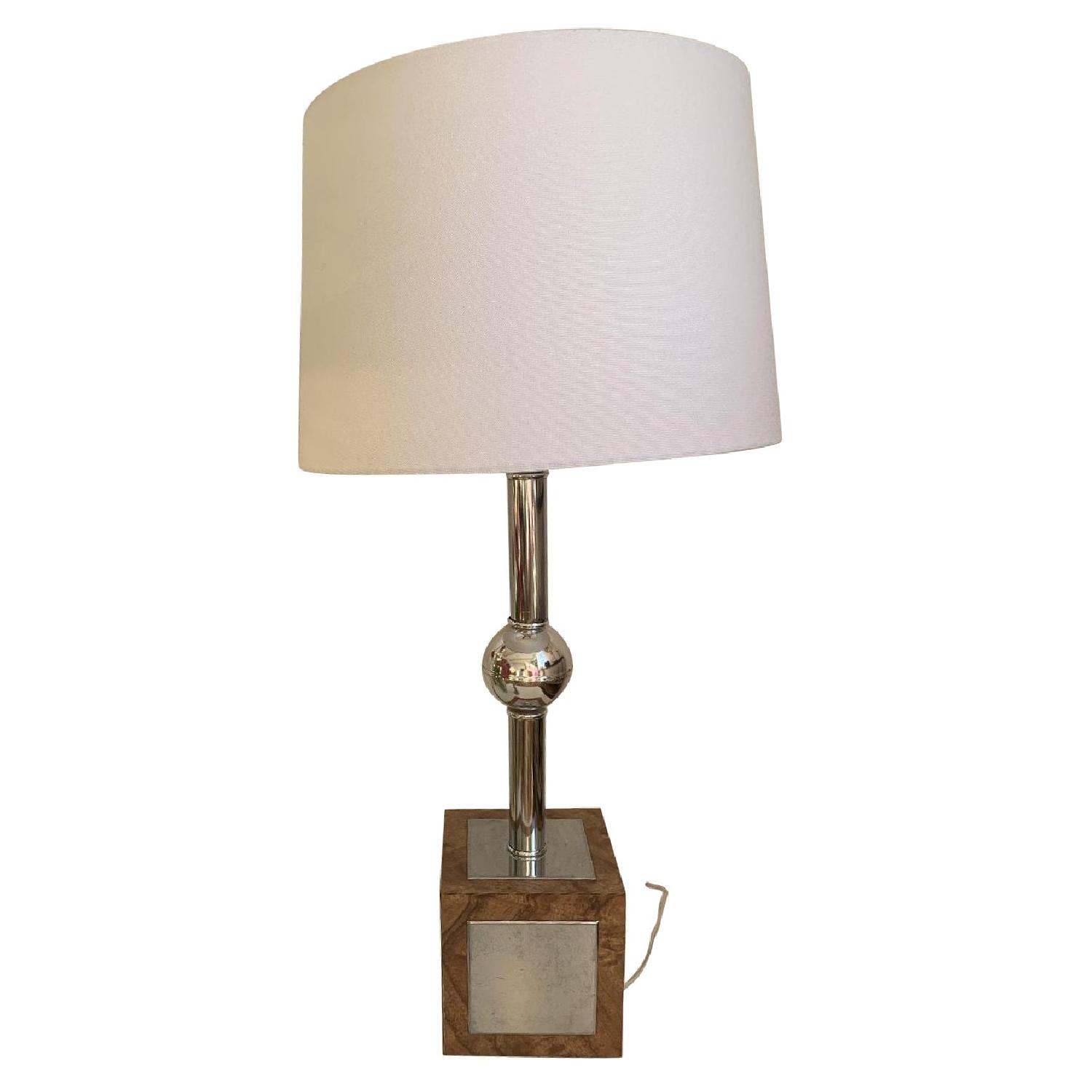 Seller's Notes:Very unique vintage wood + metal table or desk lamp. Lamp shade and wiring are all new, in perfect working condition. The silver has some scratches on it, nothing unsightly. See images for imperfections.