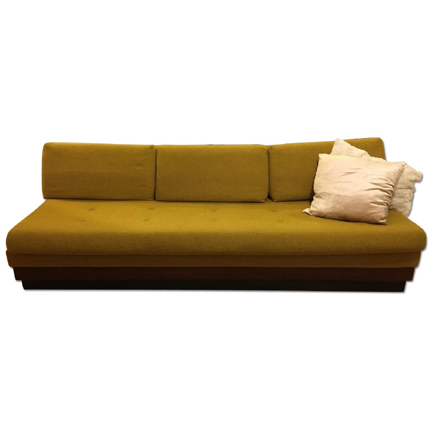 Seller's Notes:This is a genuine mid century sleeper sofa! We are moving to LA and sadly cannot take this with us. It is amazing, and such a rare find! We bought from a woman in Yardley PA last year, the couch is from either the 50's or 60s. It's perfect for a living room and extra sleeping space for guests. It is in great condition and super comfortable. Minor wear, tiny scratches/ marks around the base wood, nothing too noticeable or anything that effects the function. We purchased last year and had it set up in a mid century style apartment.