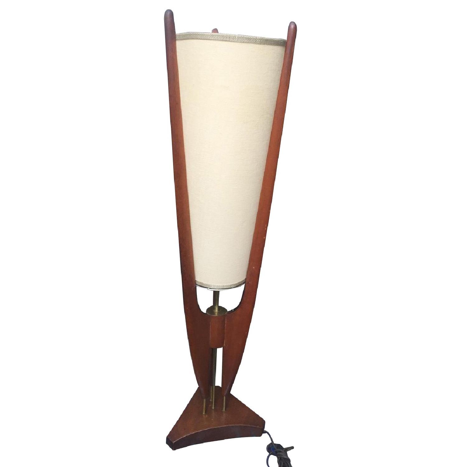 Seller's Notes:Mid century wood standing lamp, 44 inches tall, 14 inches around at the top