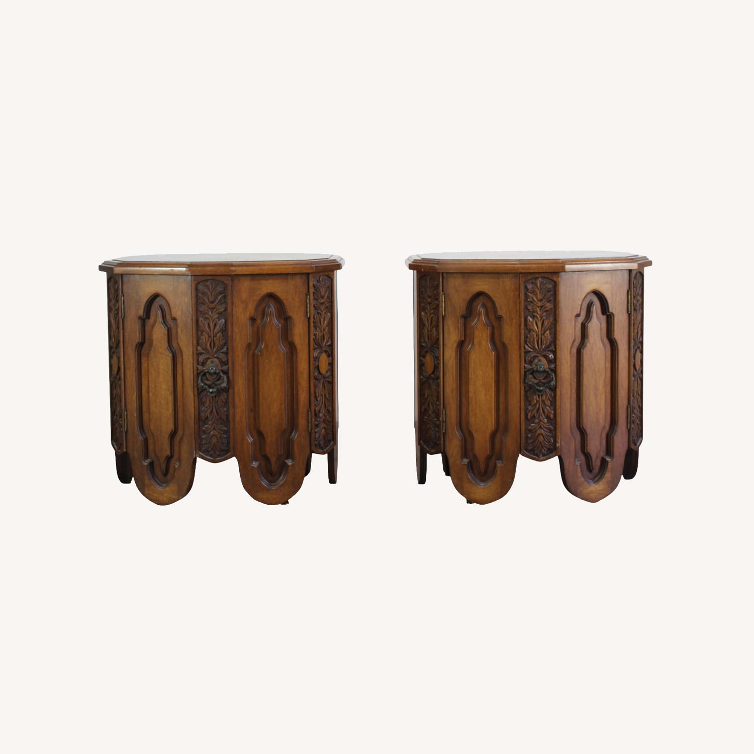 Seller's Notes:Pair of Mid century walnut nightstands. These is a solid built pair of walnut nightstand with double double doors and single drawers. Marked "Freed-Warran Inc NY". Dimensions; 26" Width x 20" Depth x 26" Height. See pictures and condition for reference. If you have any question, please let us know, thank you.