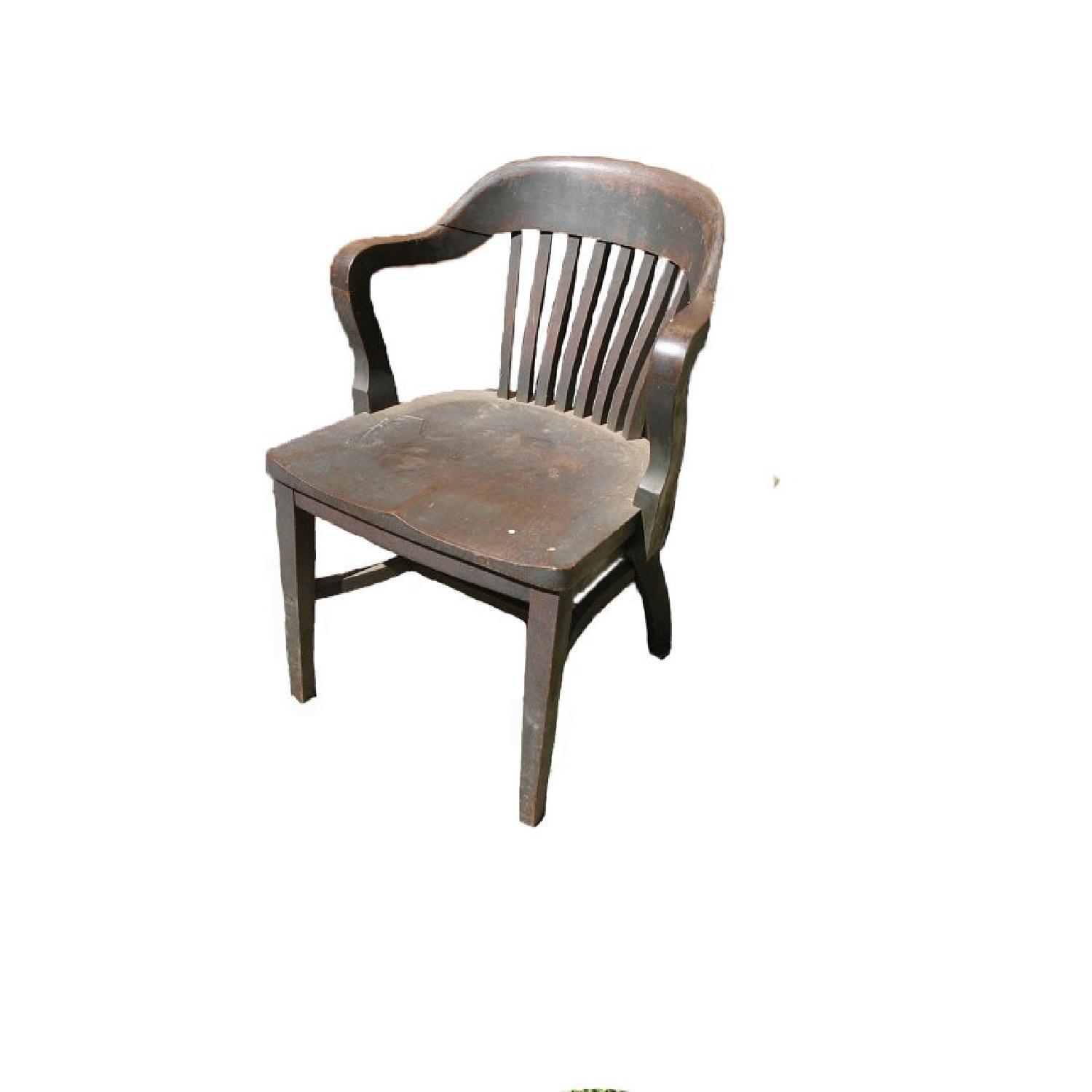 Seller's Notes:- Vintage 1900s, 1920s, 1930s Office Chair - Solid Wood - Sikes Chair with Arm Rests Vintage MId Century Desk/ Office Chair. Most likely manufactured by the Sikes Company in Pennsylvania in the early 1900s, 1920's 1930's. These chairs are known for their durability and influence from the Arts and Crafts movement.