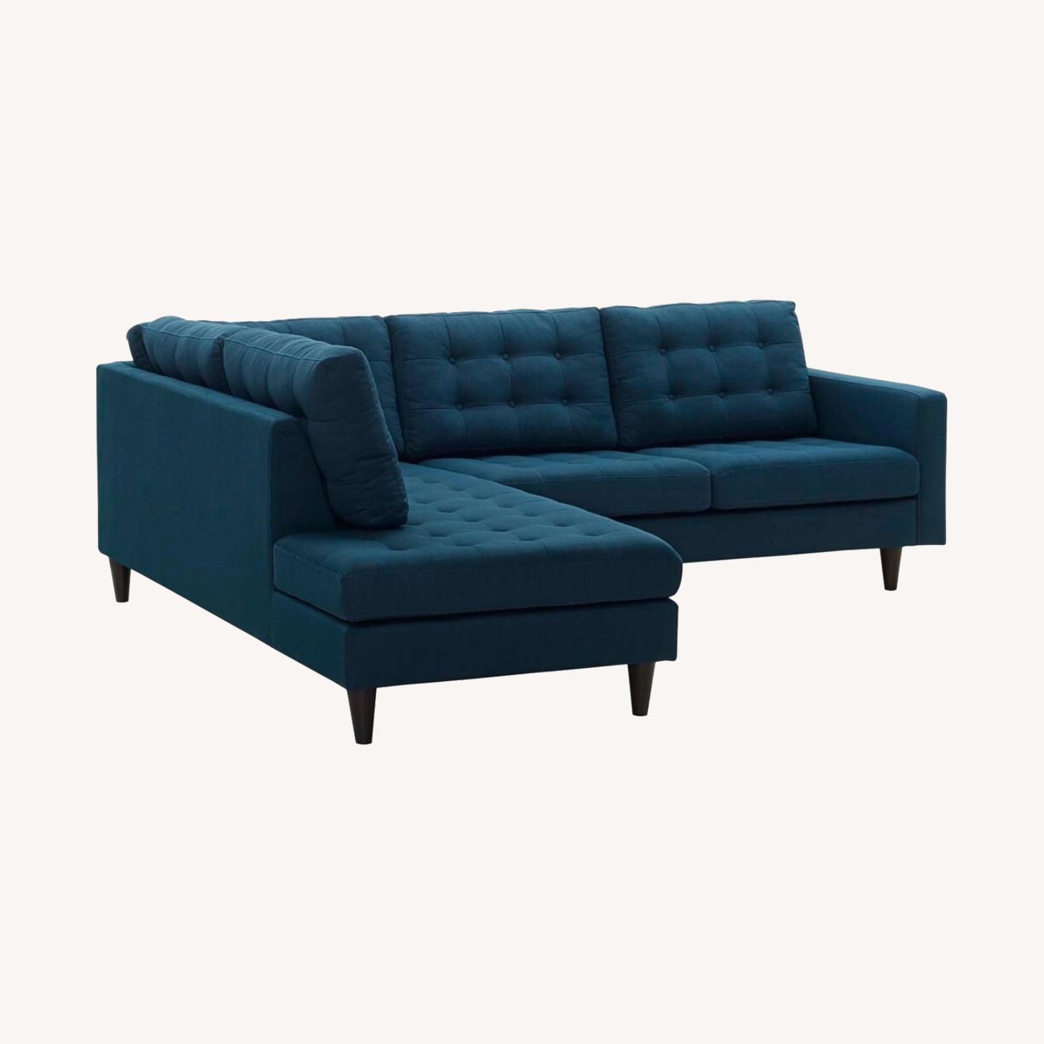 Seller's Notes:This couch is heralded with deeply tufted buttons, plush cushions, and armrests that convey that perfect air of nobility. The solid wood legs come with plastic glides to prevent floor scratching, and the fine fabric upholstery leaves the recipients feeling richly rewarded. • Mid-Century Left Bumper Chaise/Right-Facing Loveseat • Deeply Tufted Buttons • Fine Polyester Upholstery • Set includes: One - Left Facing Bumper One - Right-Facing Loveseat • Materials: Seat cushion:22kg/m3 density foam 70 Back cushion is polyester fiber,Yuhua fabric 100% polyester,Frame:Solid wood; Leg: solid wood, brown color, KD structure, plastic foot pad. • Finish: Fabric • Upholstery color: Blue • Seat dimensions: • Dimensions: Overall Right-Facing Loveseat Dimensions: 64.5""L x 34""W x 34""H Armrest Dimensions: 4.5""W x 25.5""H Cushion Thichkness: 6""W Overall Left Facing Bumper Dimensions: 36.5""L x 84""W x 35.5""H Floor to Top of Seat: 19""H Overall Product Dimensions: 64.5""L x 118""W x 35.5""H