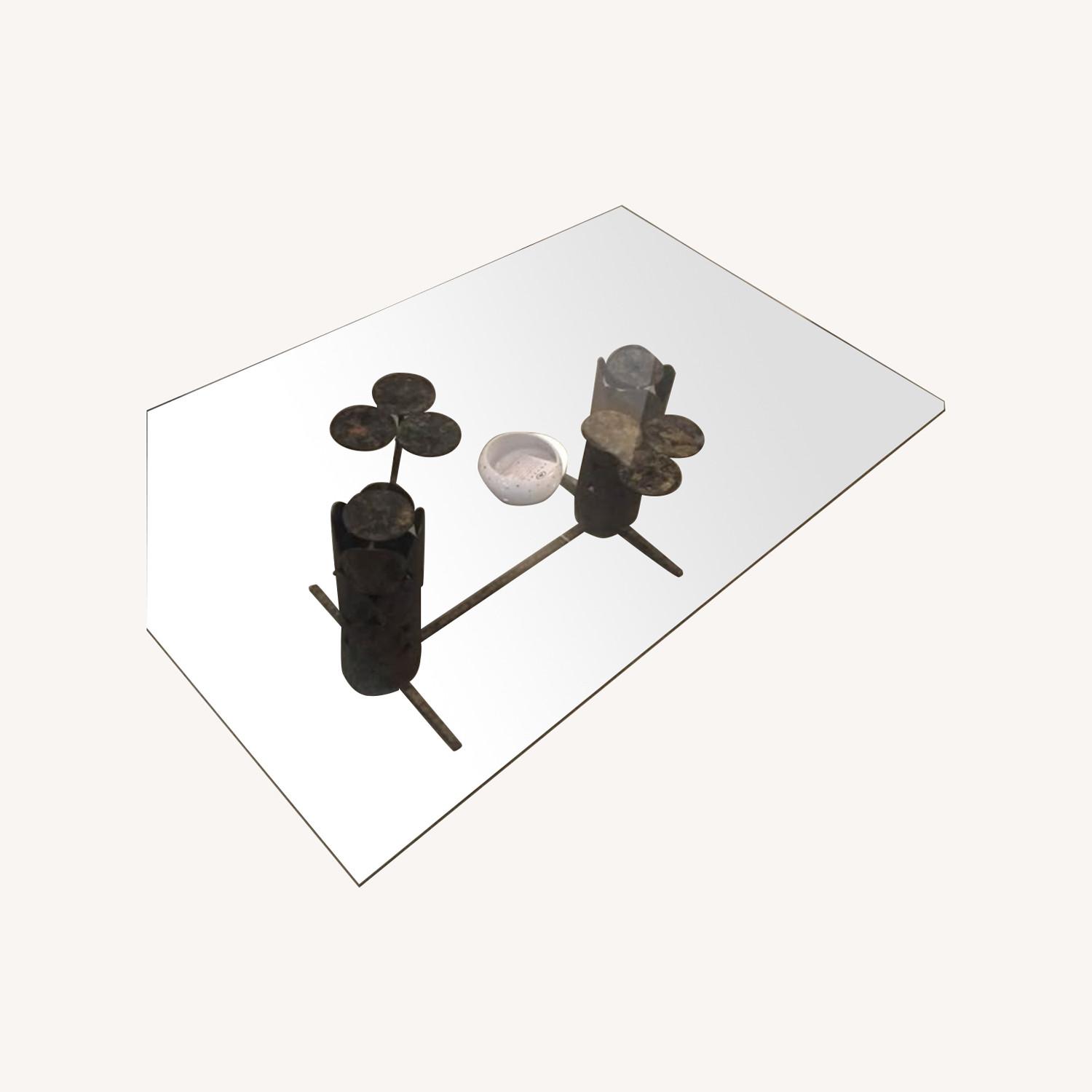 Seller's Notes:Midcentury modern brutalist glass and metal coffee table - after Silas Seandel. Glass top is still wrapped from move - unsure of exact dimensions, but wrapping is 48"x30". Base is 25" wide x 16" deep x 14.5" tall Sad to part with it, but does not fit our new space. We can bring it down to the curb for you, but buyer is responsible for getting this piece into their car.